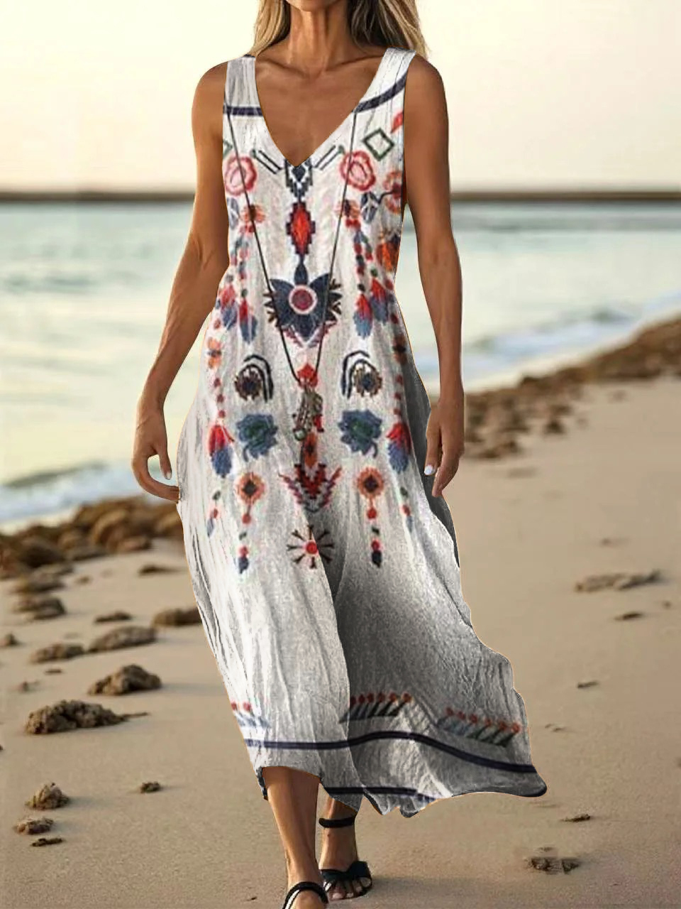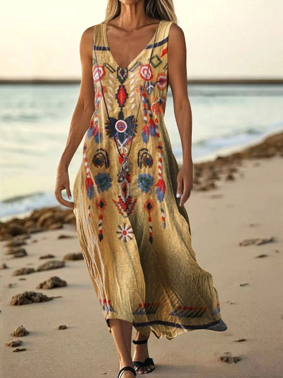 Women's Vintage Tattoo Pattern Art Print Pocket Cotton Dresses