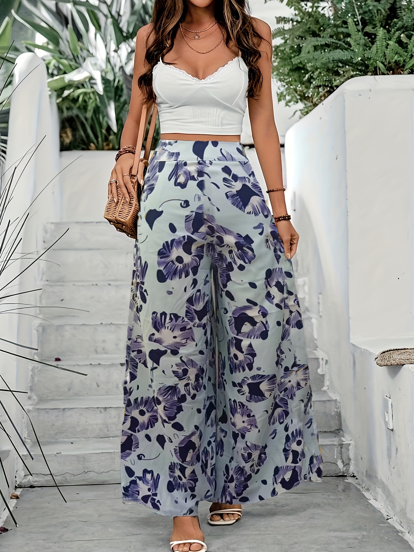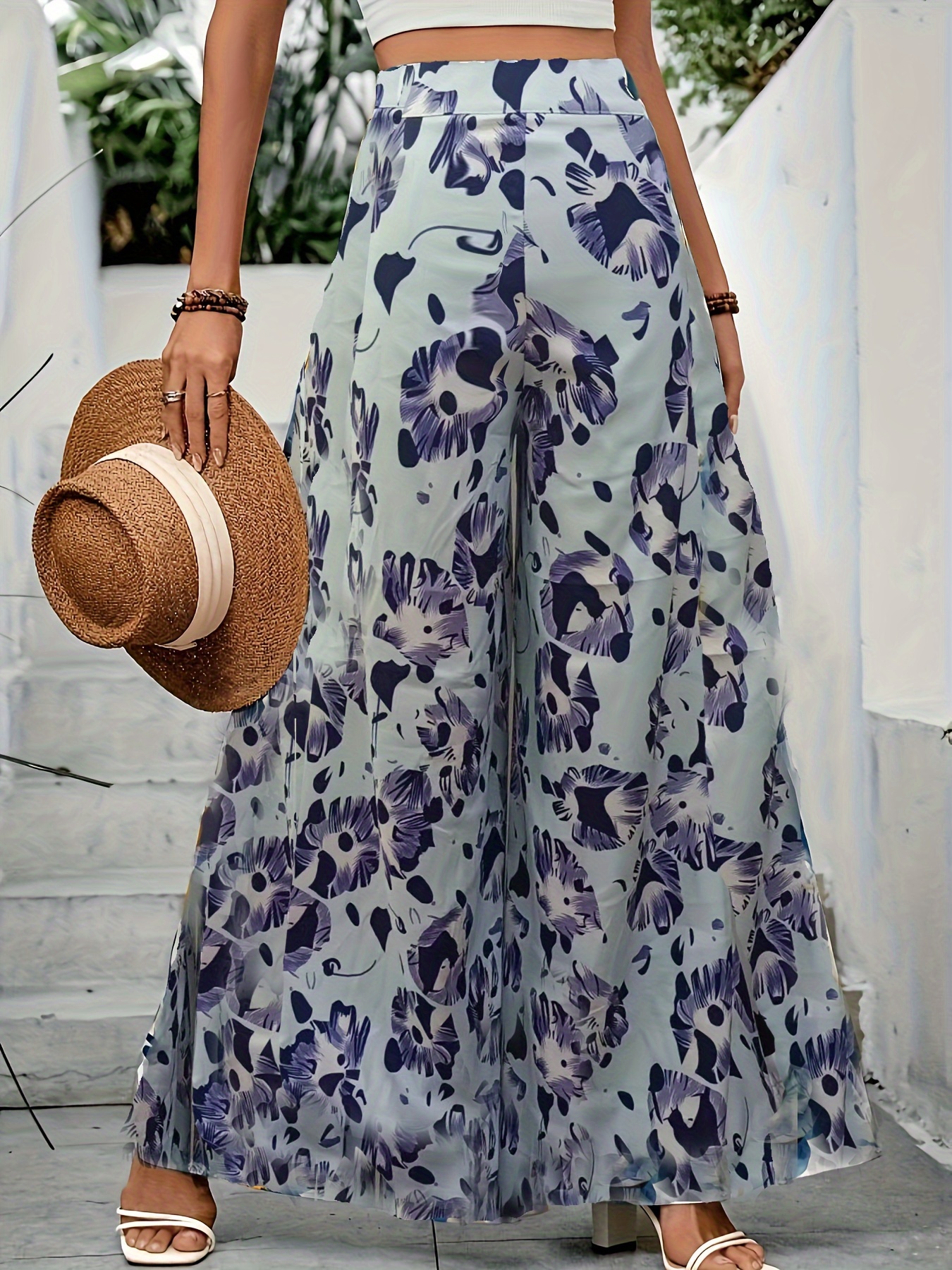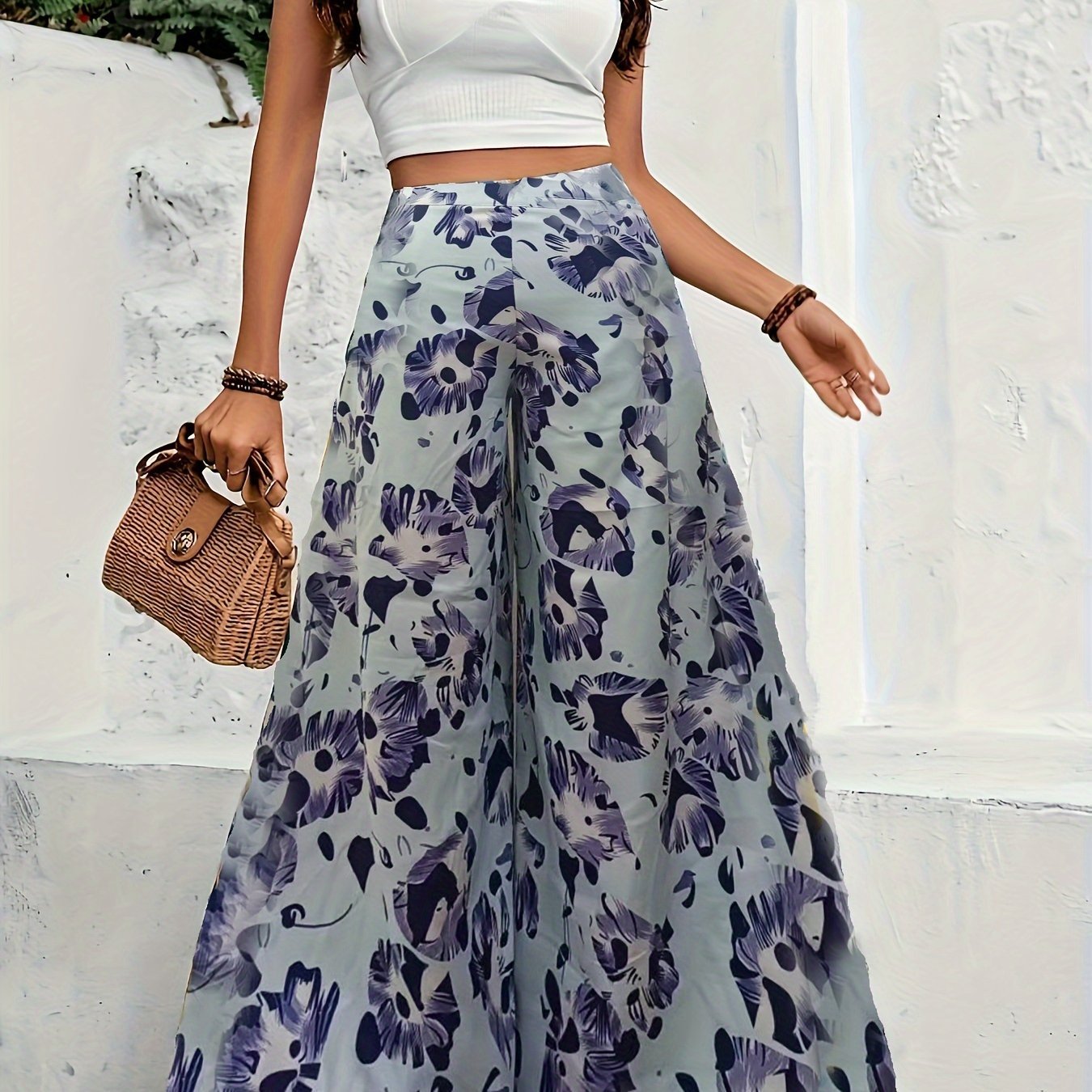 Allover Print Wide Leg Pants, Casual Loose Pants For Spring & Summer, Women's Clothing