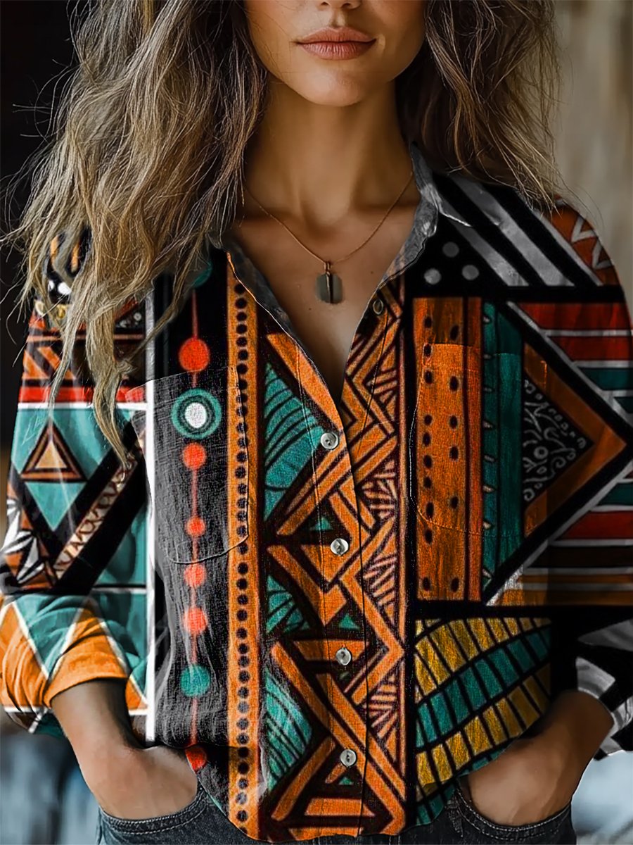 Art Print Casual Long Sleeve Comfortable Cotton Shirt