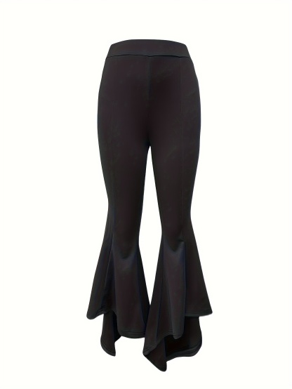 Casual High Waist Solid Irregular Hem Pants - Women's Clothing
