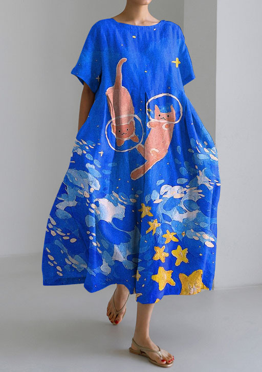 Cat Art Painting Casual Loose Short Sleeve Dress