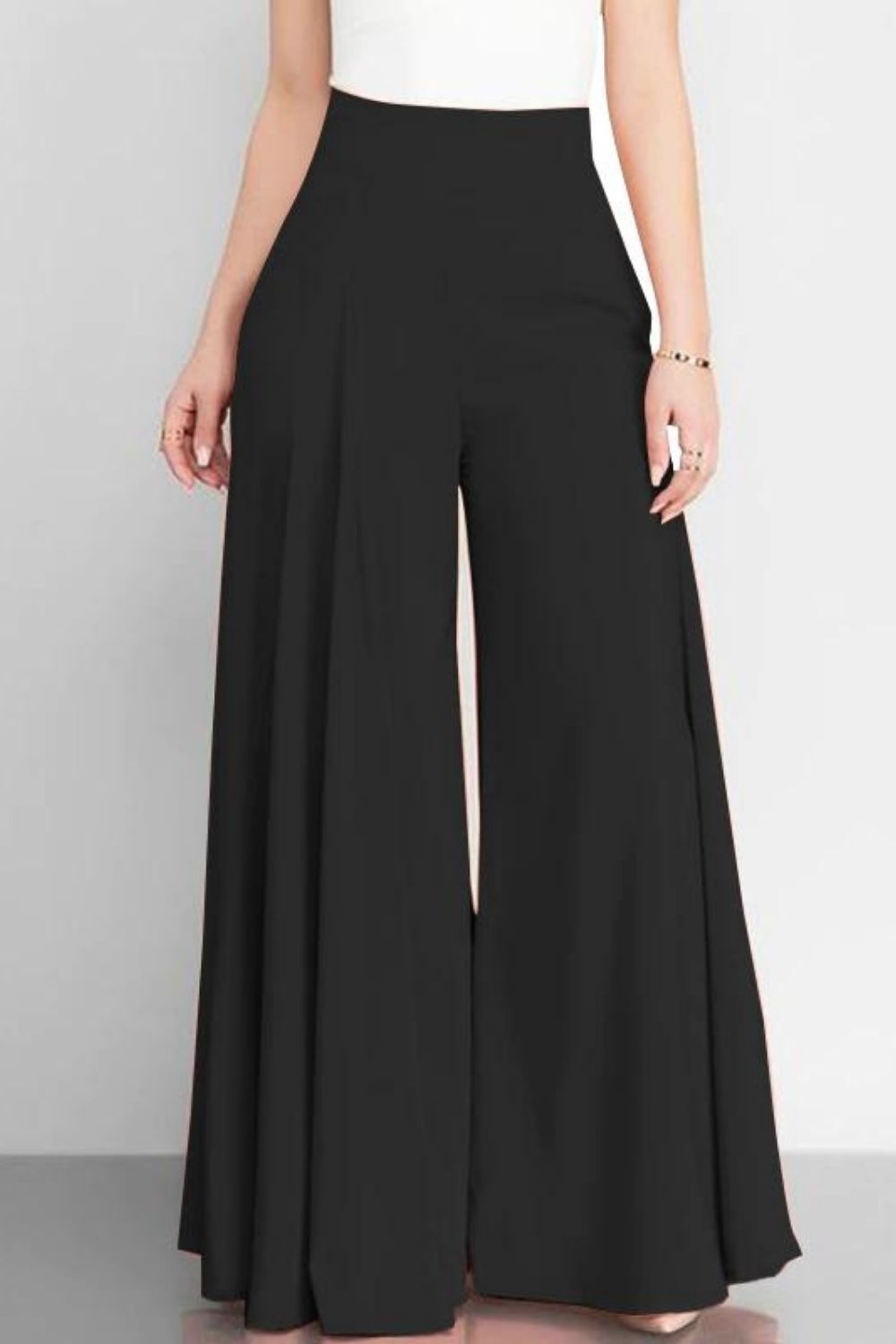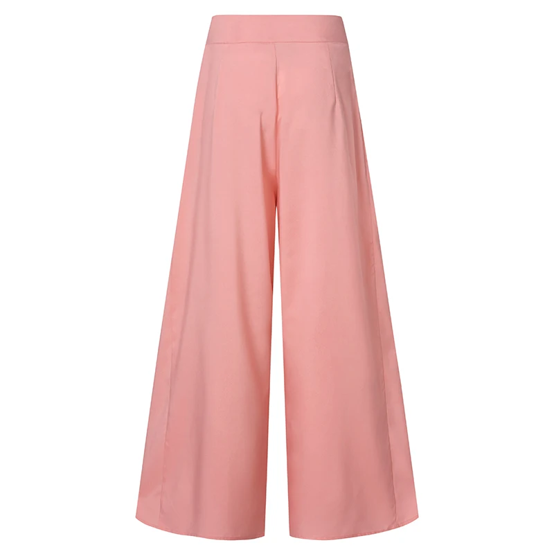 Elegant High Waist Retro Flared Loose Casual Solid Color Wide Leg Pants