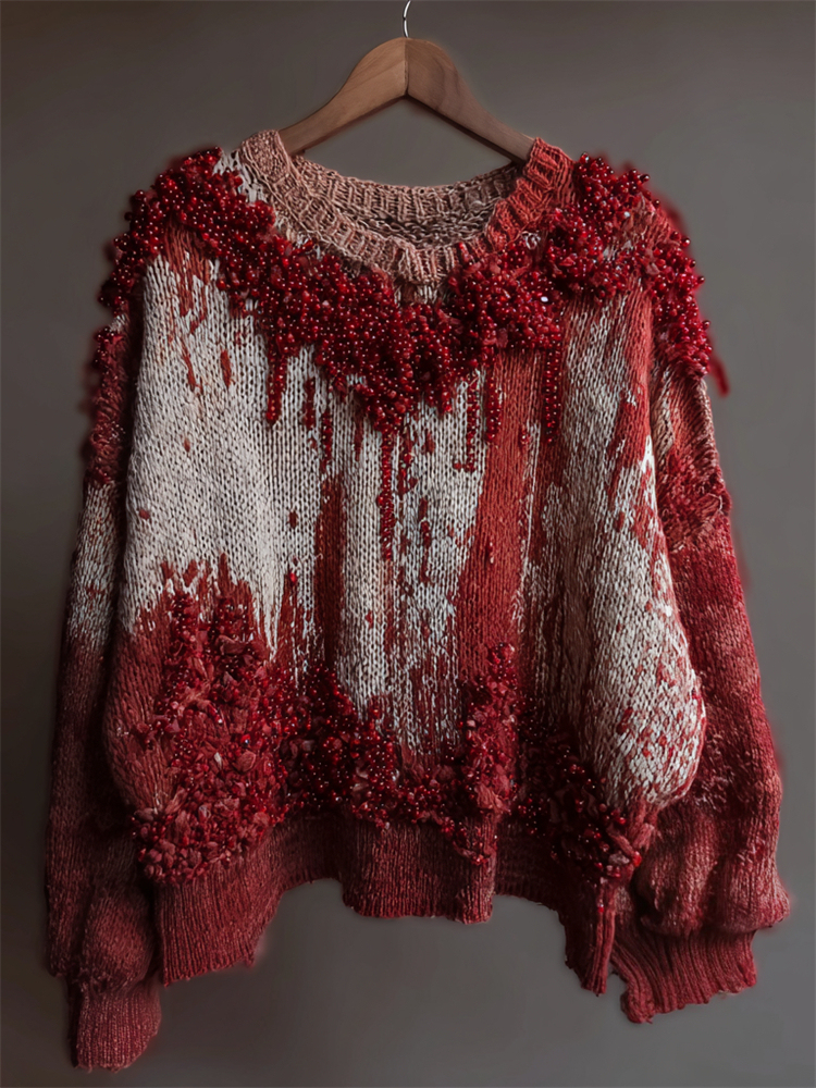 Halloween Night Bloody Beaded Cozy Knit Sweater