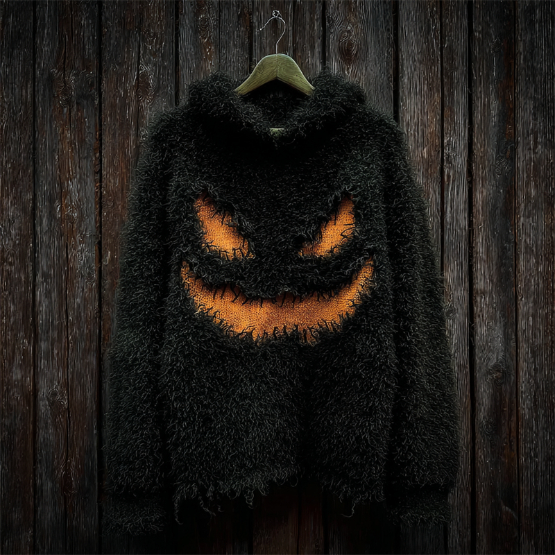 Halloween Spooky Pumpkin Face Fuzzy Cozy Hoodie