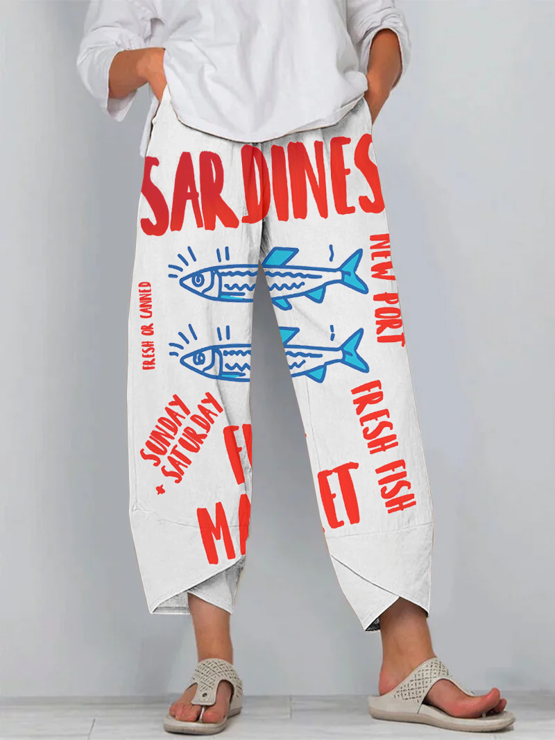 Japanese Fashion Sardines Art Print Cropped Pants