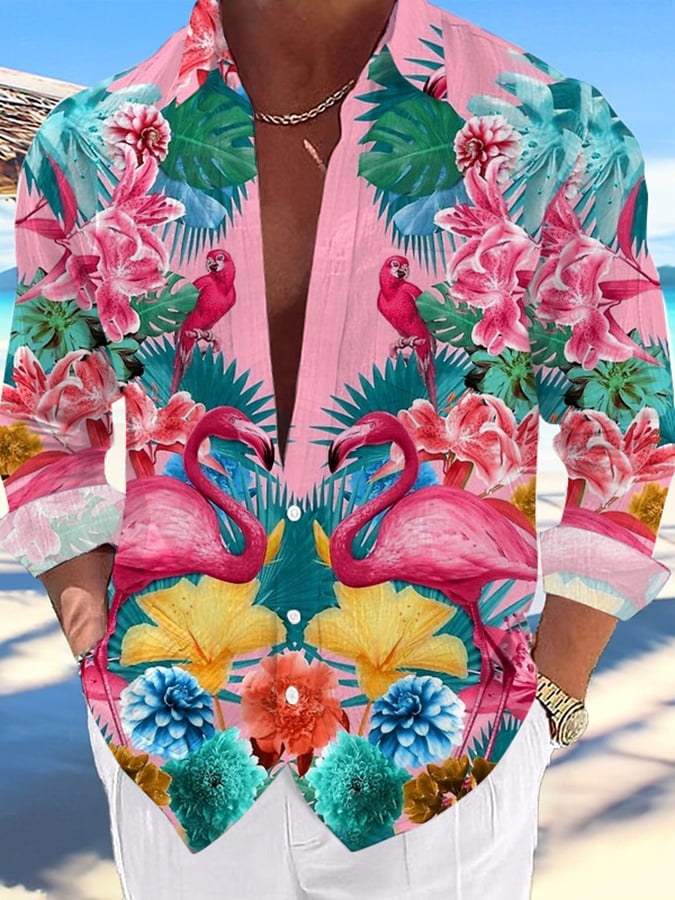 Men's Casual Hawaiian Coconut Flamingo Lapel Shirt