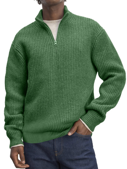 Men's Casual Stand Collar Zipper Solid Color Comfortable Knitted Sweater