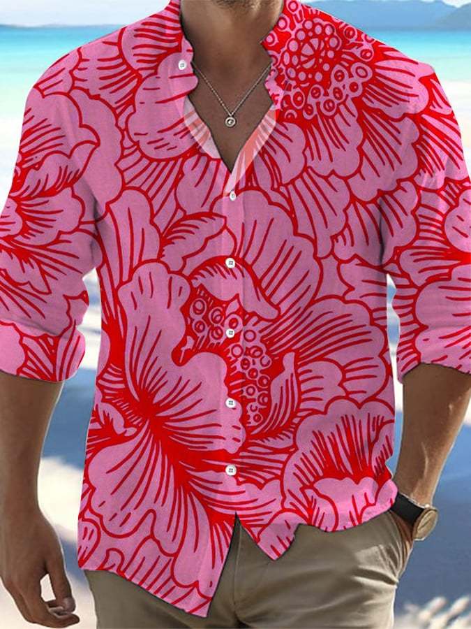 Men's Fashion Barbie Pink Simple Vacation Casual Shirt