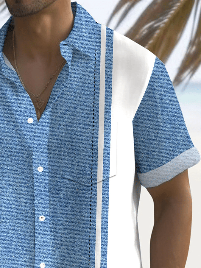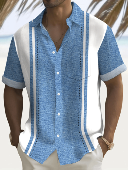 Men's Retro Textured Contrast Print Casual Shirt (With Pockets)