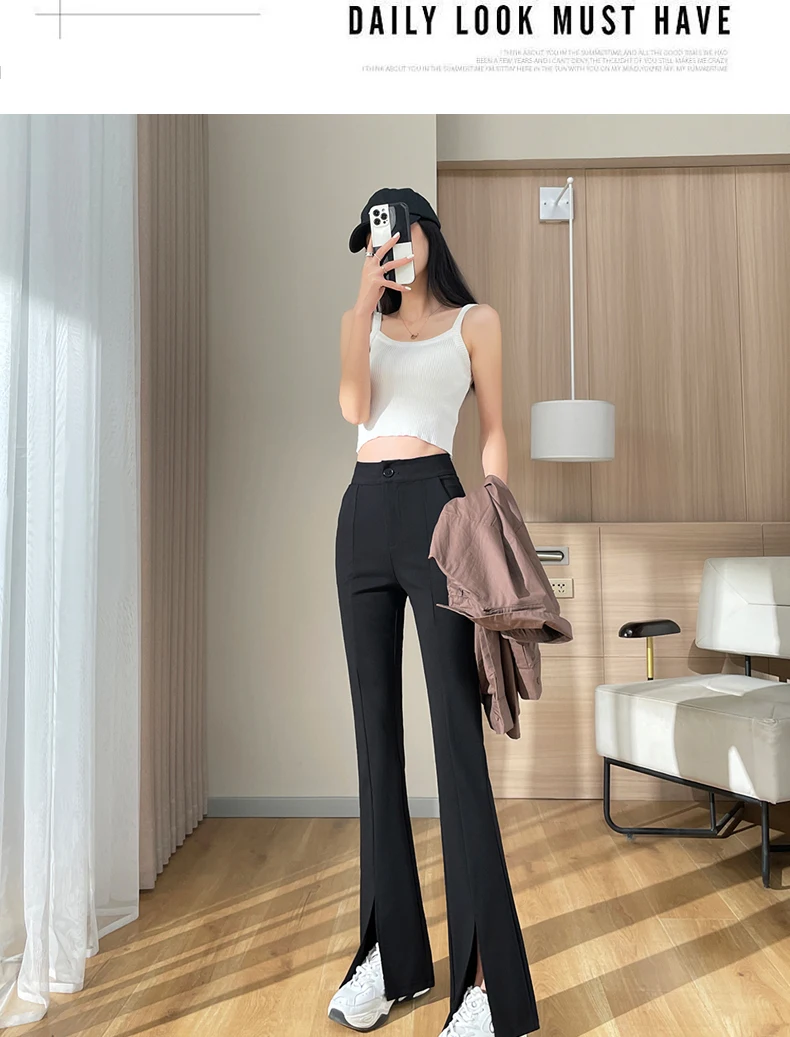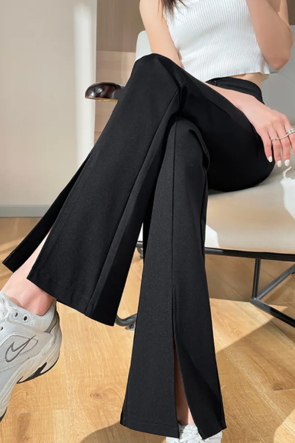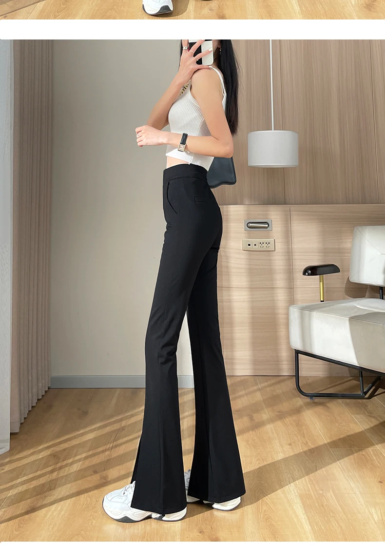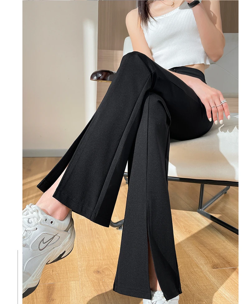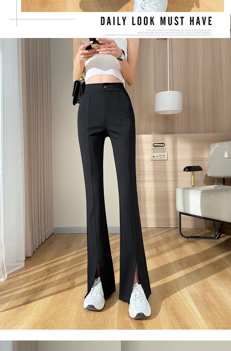 Plus Size Slit Black Flare Pants for Women Trousers Korean Style Casual Office Lady Female High Waist Long Bell Bottom Pants