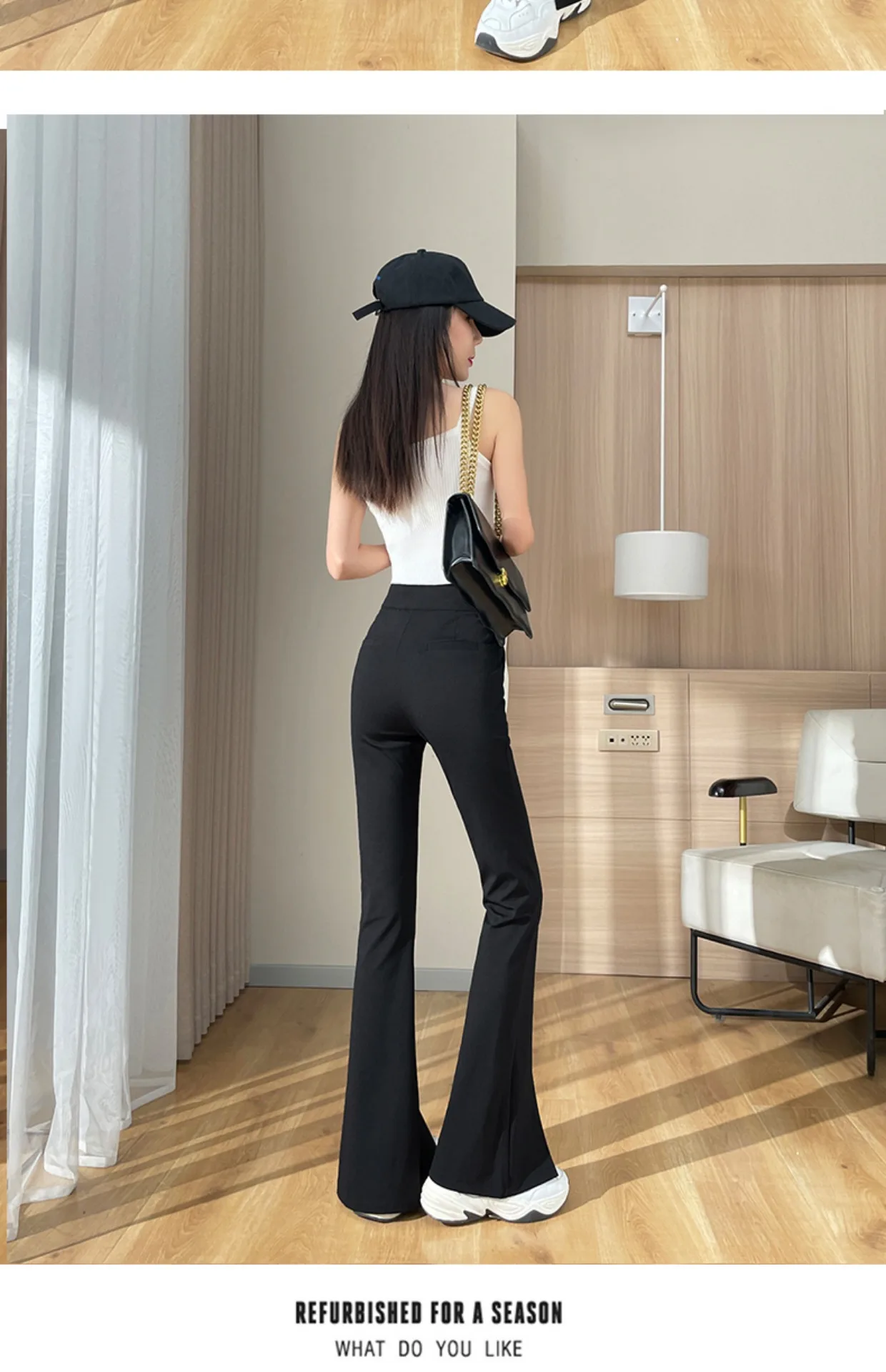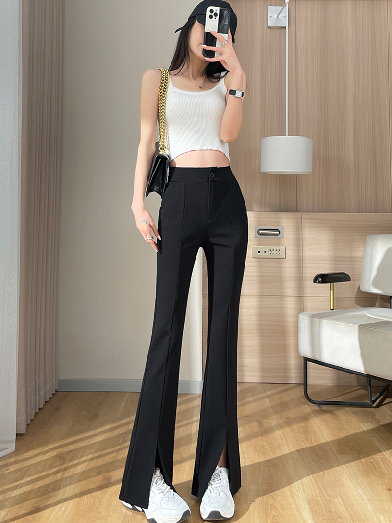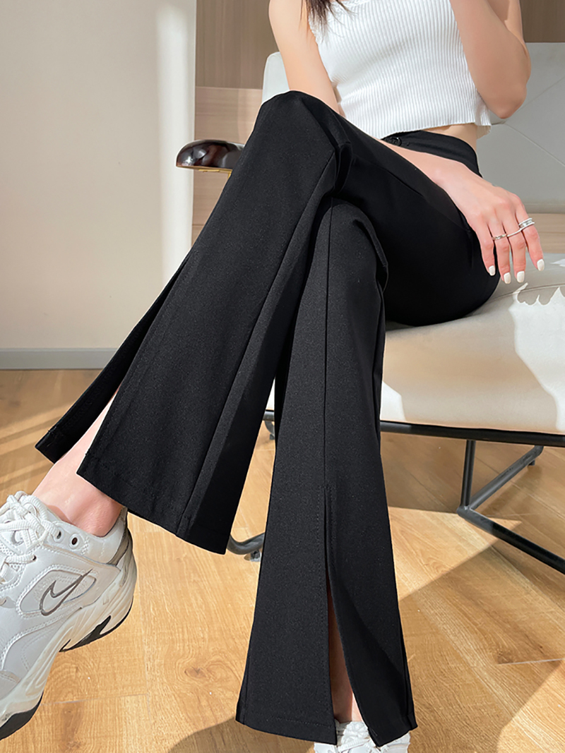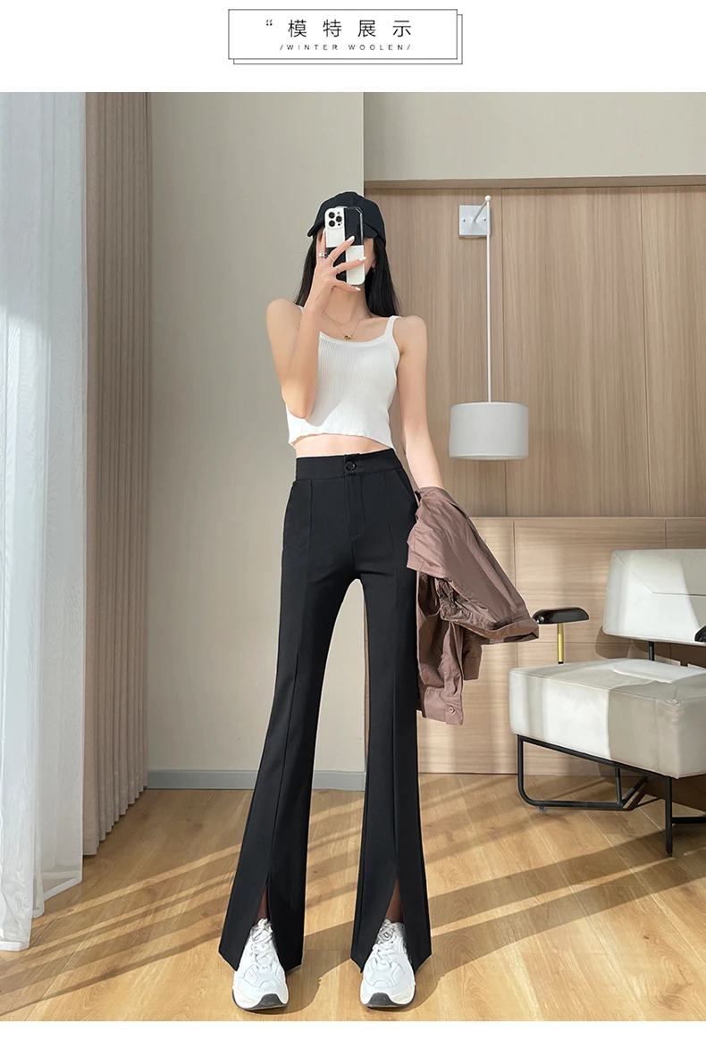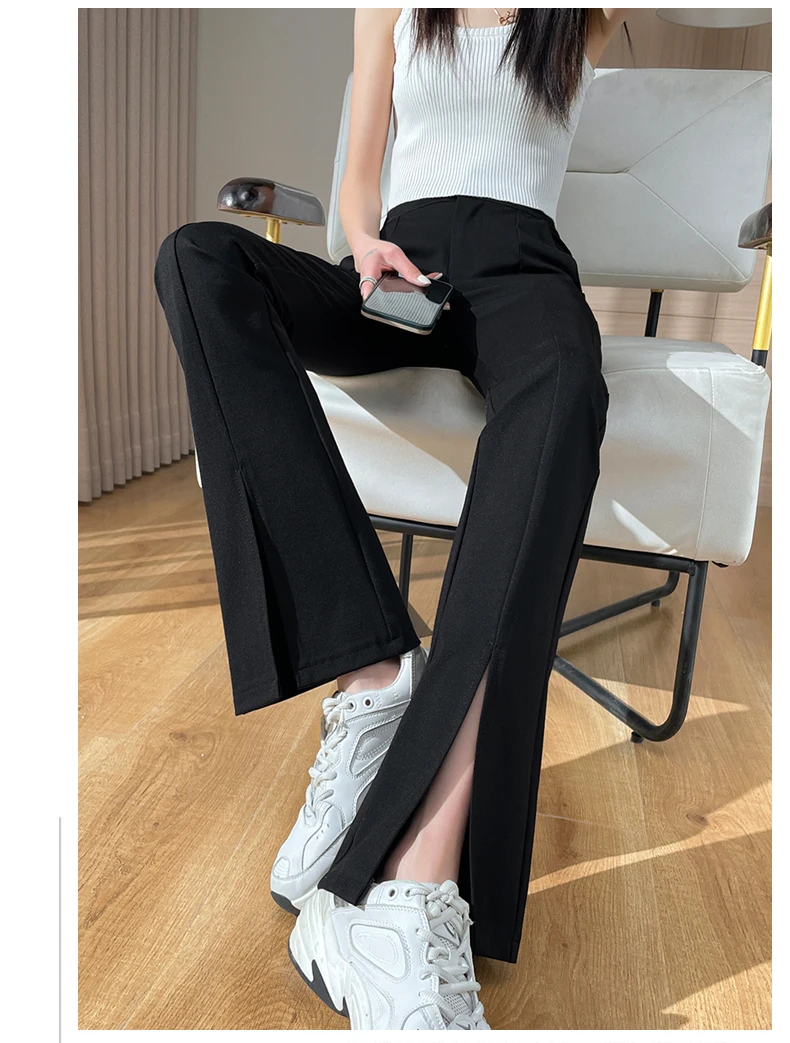Plus Size Slit Black Flare Pants for Women Trousers Korean Style Casual Office Lady Female High Waist Long Bell Bottom Pants