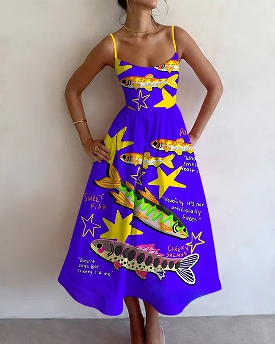 Star Fish Print Sling Dress