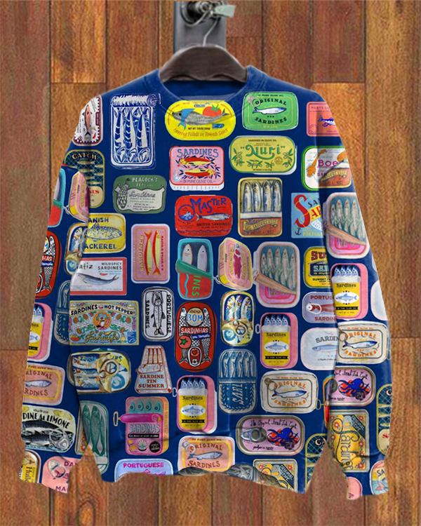Unisex Vintage Canned Fish Loose Sweatshirt