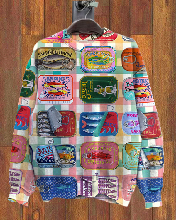 Unisex Vintage Seafood Fish Can Loose Sweatshirt