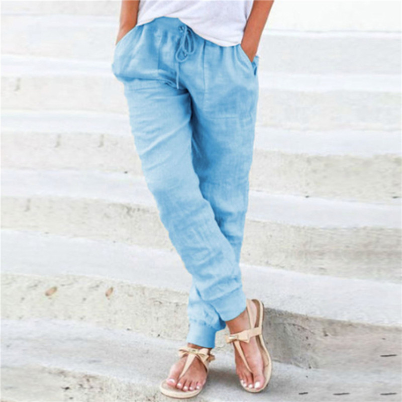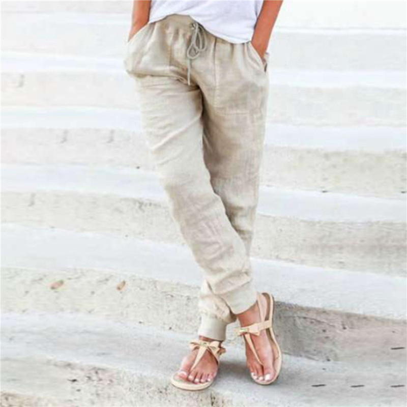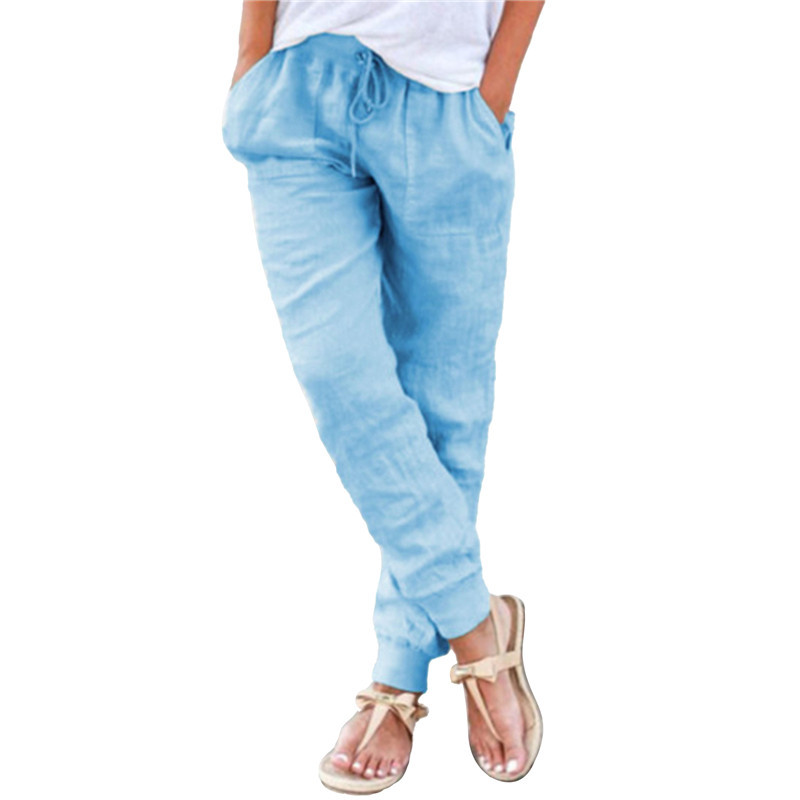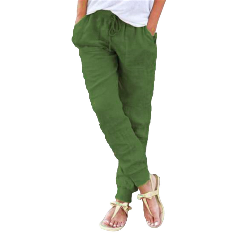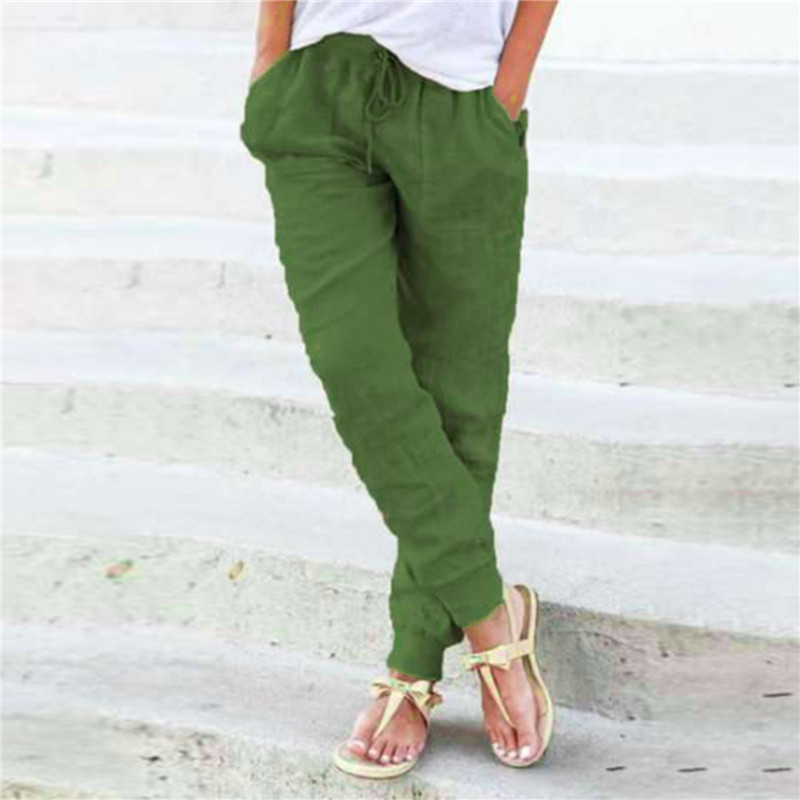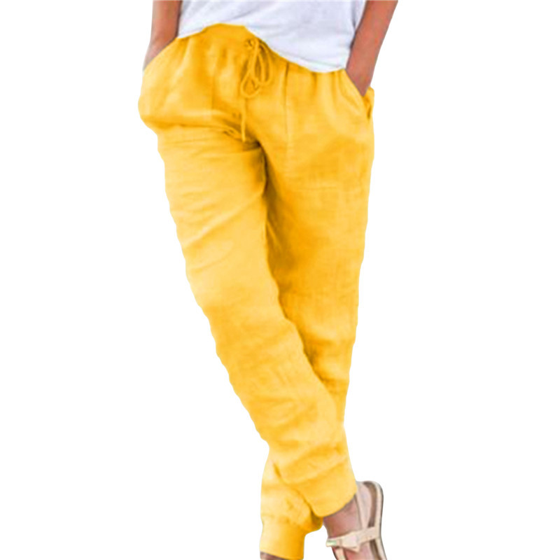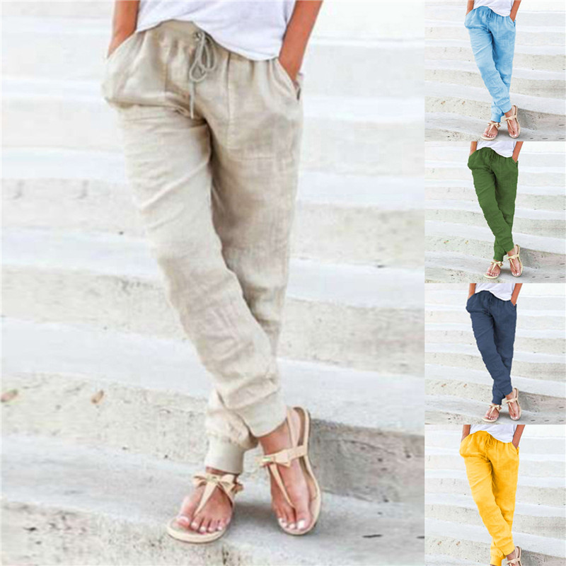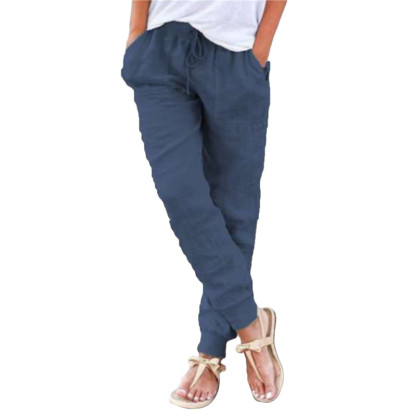 Women Cotton Solid Color Casual Comfortable Pants