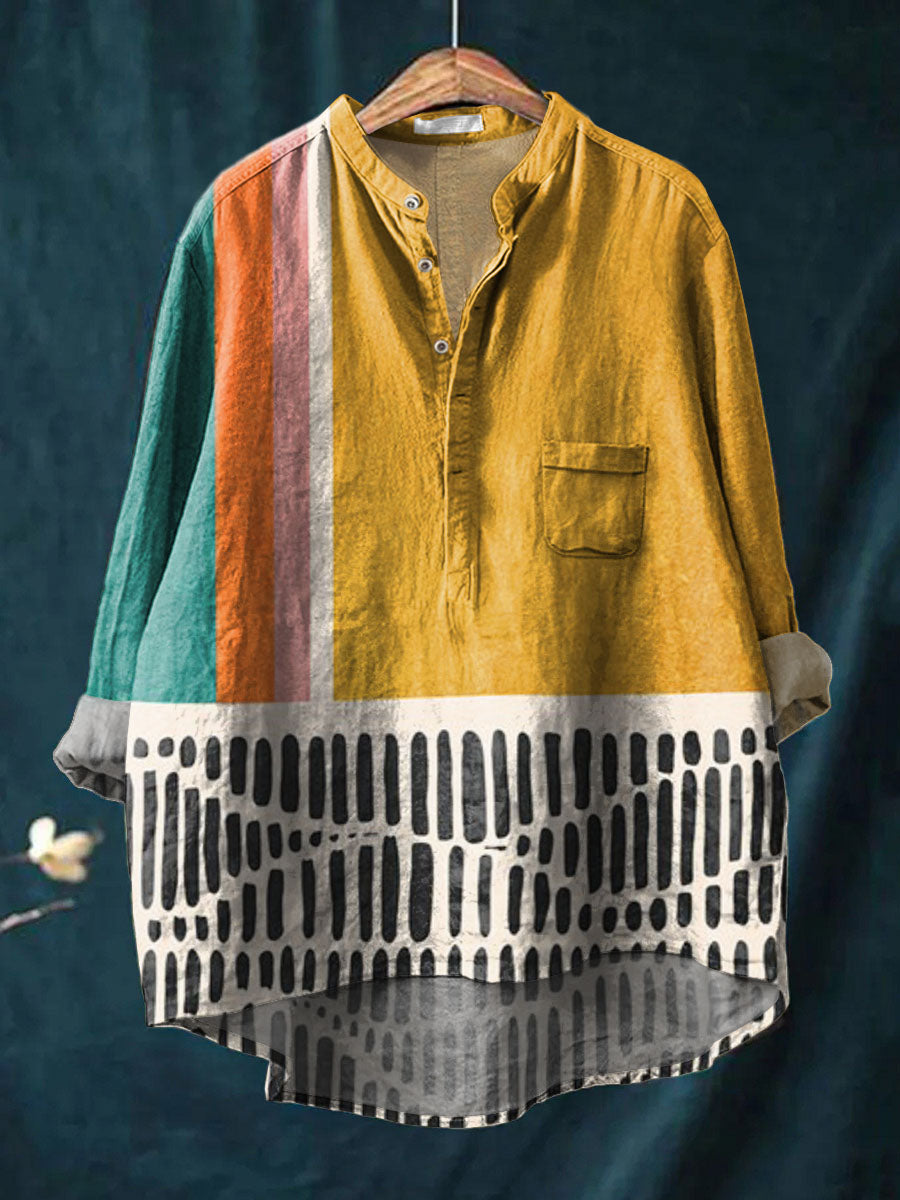 Women's Abstract Geometric Pattern Art Print Casual Long Sleeve Comfortable Cotton Shirt