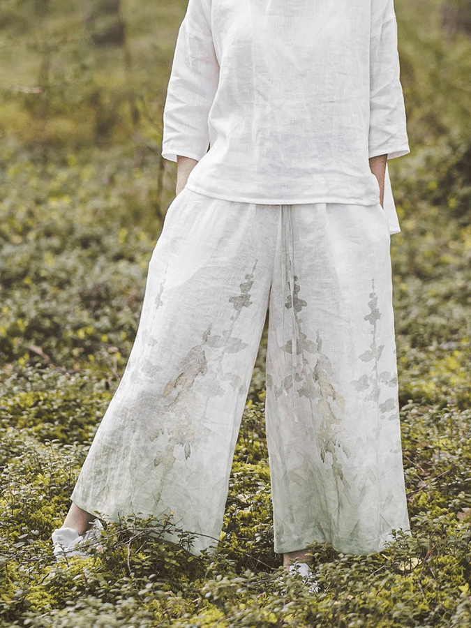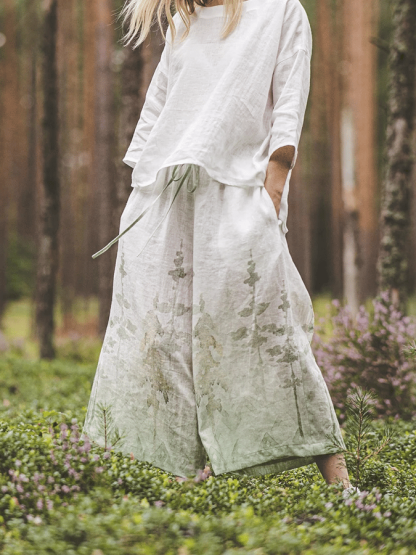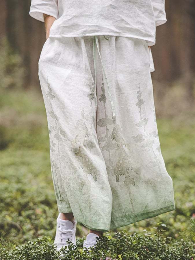Women's Gradient Forest Print Linen Wide-Leg Pants
