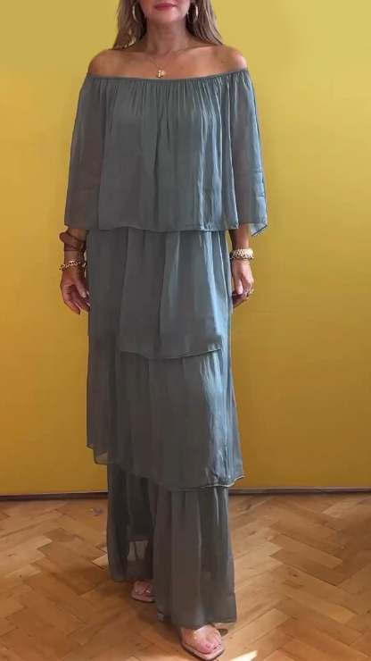 Women's One Shoulder Chiffon Multi-layer Dress