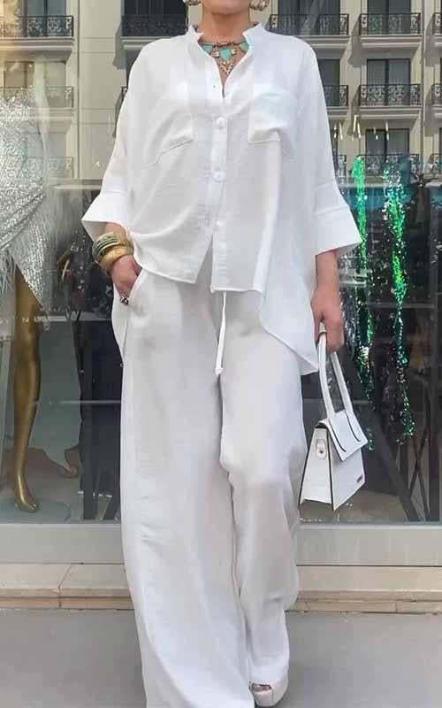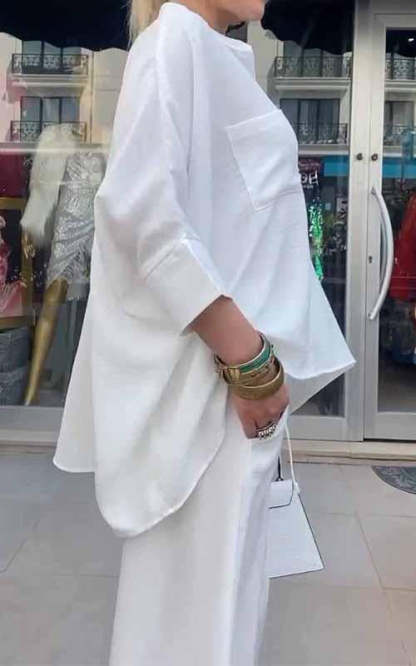 Women's Round-neck Solid Color Loose Two-piece Suit