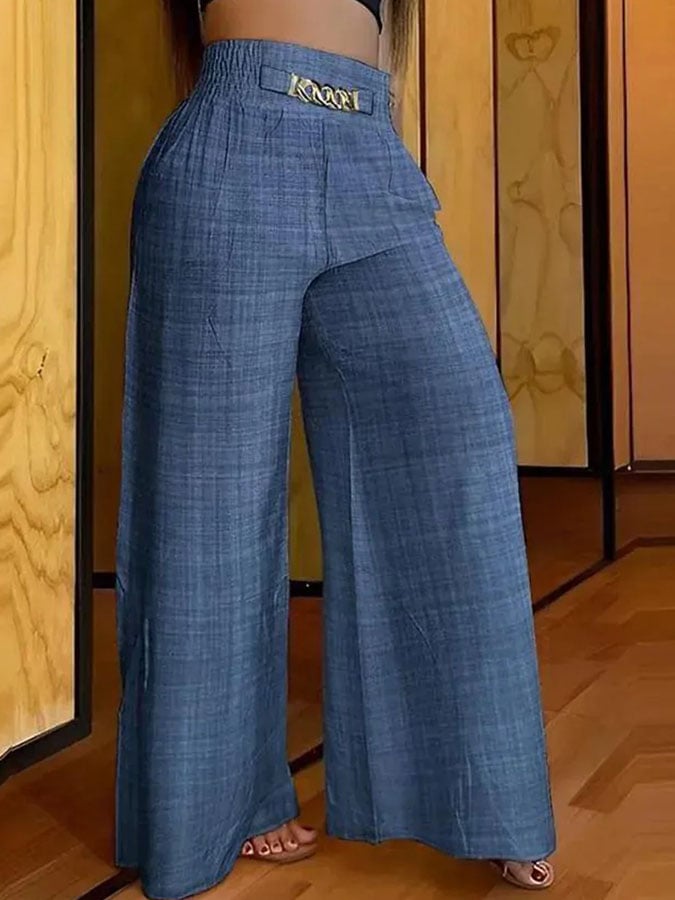 Women'S Solid Color Casual Wide-Leg Pants