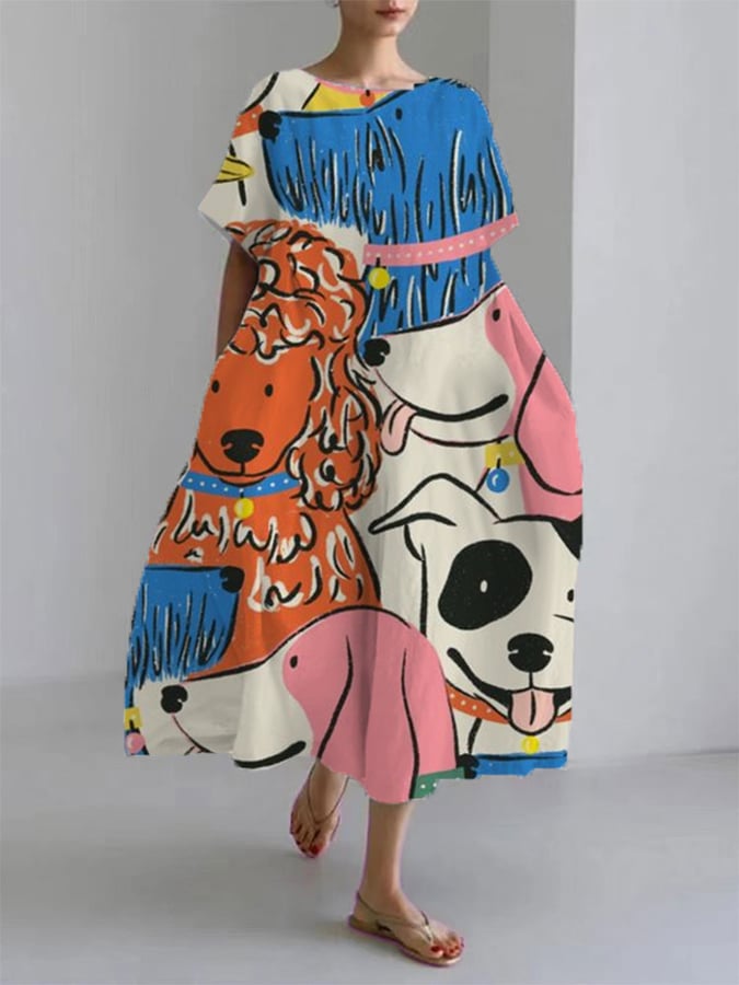 Women‘s Spring And Summer New Fashion Comfortable Loose Casual Dog Print Dress