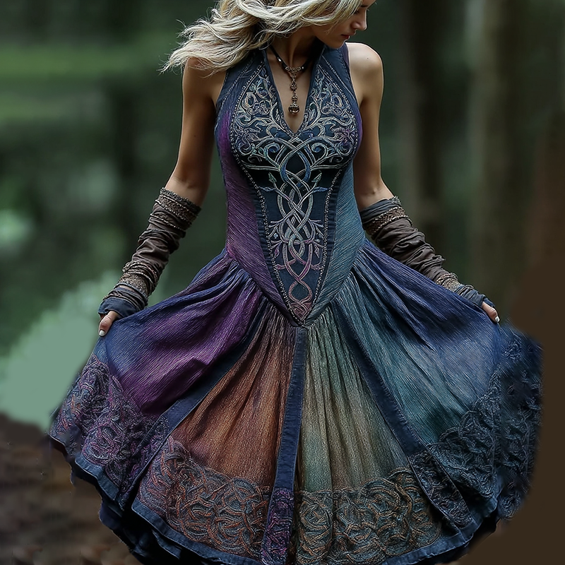 Women's Viking Celtic Knot Tree Of Life Gradient Linen Midi Dress