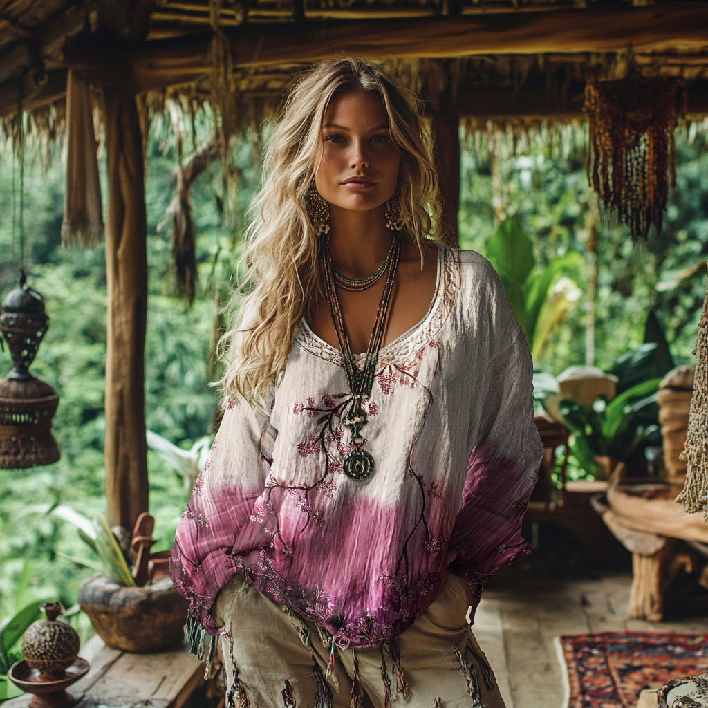 Women's Vintage Cherry Blossoms Gradient Art Long Sleeve T-shirt