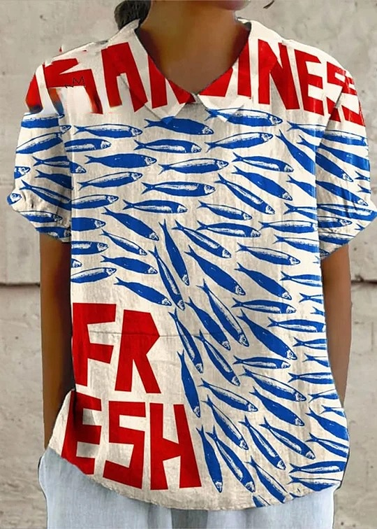 Women's Vintage Fish Art Print Casual Cotton And Linen Shirt