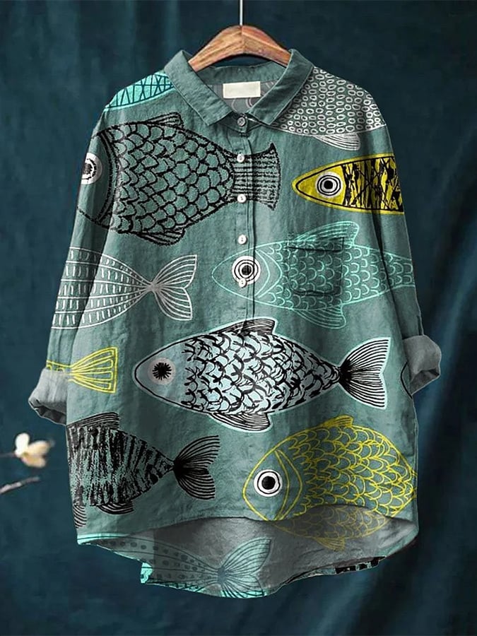 Women's Vintage Fish Art Printed Casual Shirt