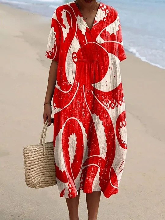 Women's Vintage Octopus Art Print Flowy Dress