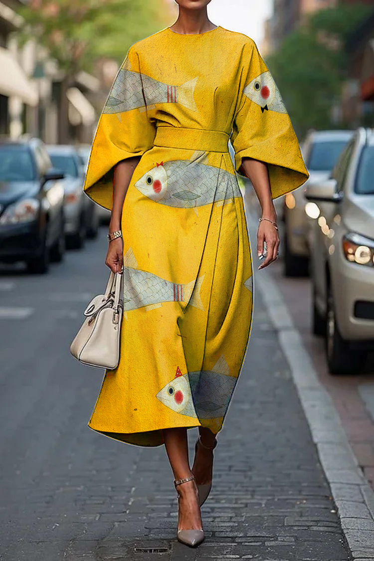 Women's Vintage Sardines Art Print Midi Dress