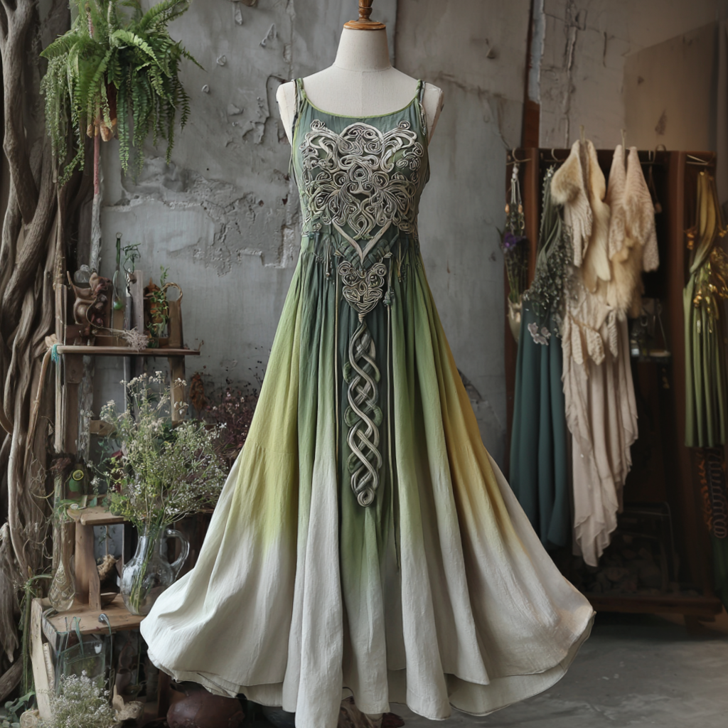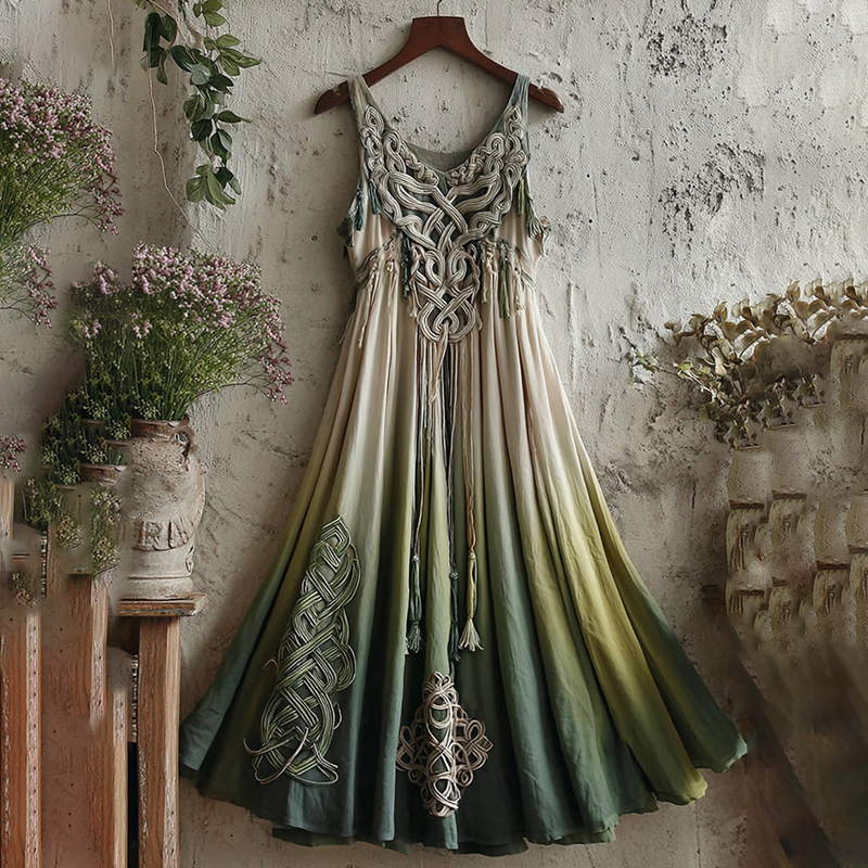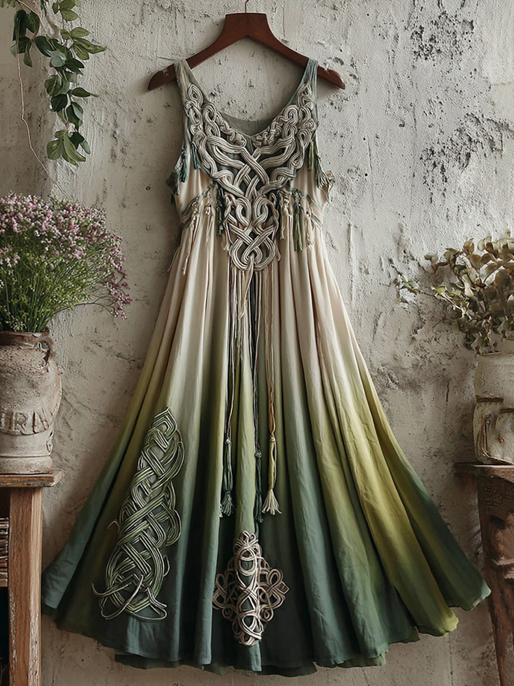 Women's Celtic Pattern Gradient Color Suspender Maxi Dress
