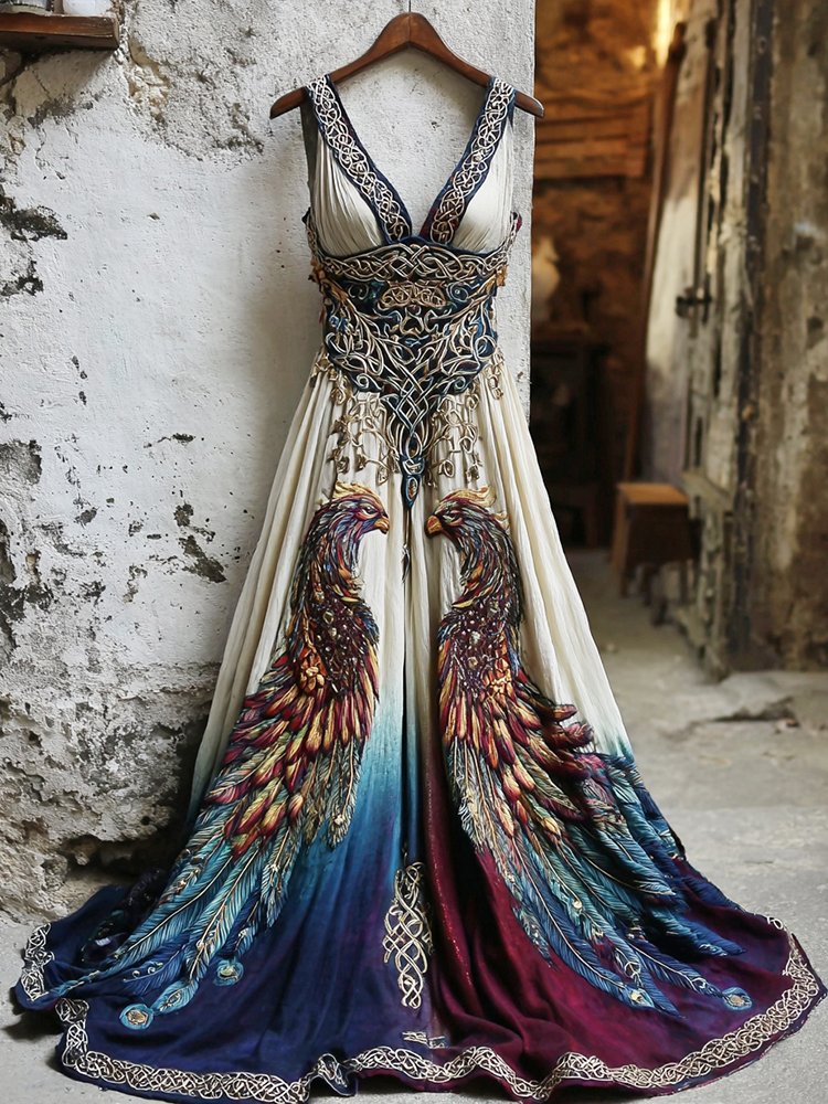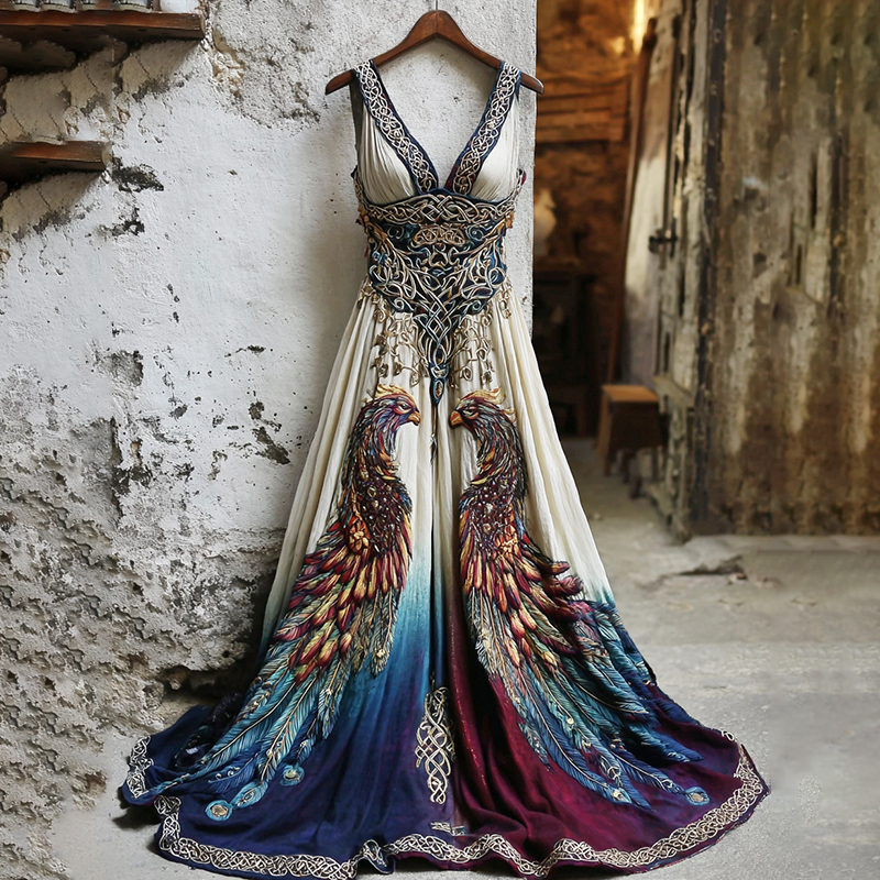 Women's Viking Celtic Knot Phoenix Totem Gradient Linen Maxi Dress