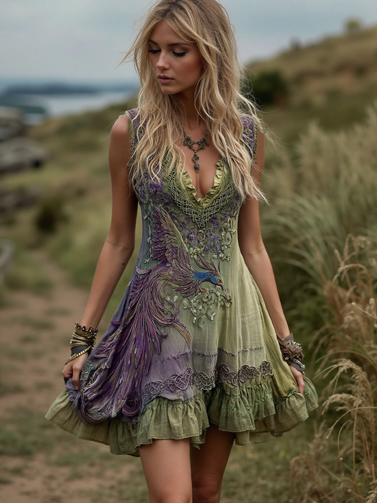Viking Mythology Phoenix Totem Gradient Mini Dress