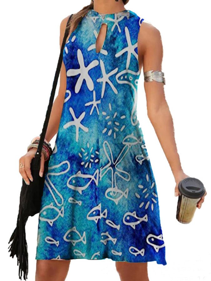 Abstract Marine Print Halterneck Cutout Tank Dress