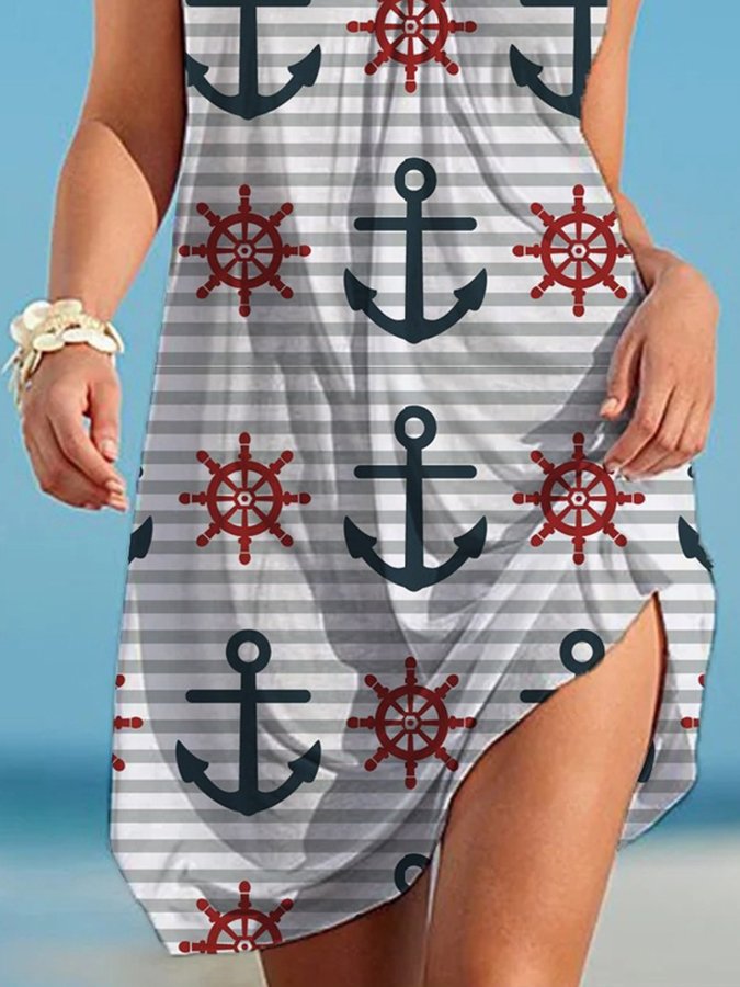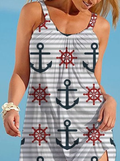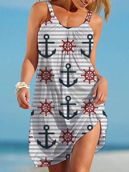 Anchor Print Casual Slip Dress