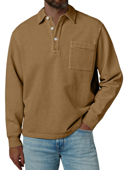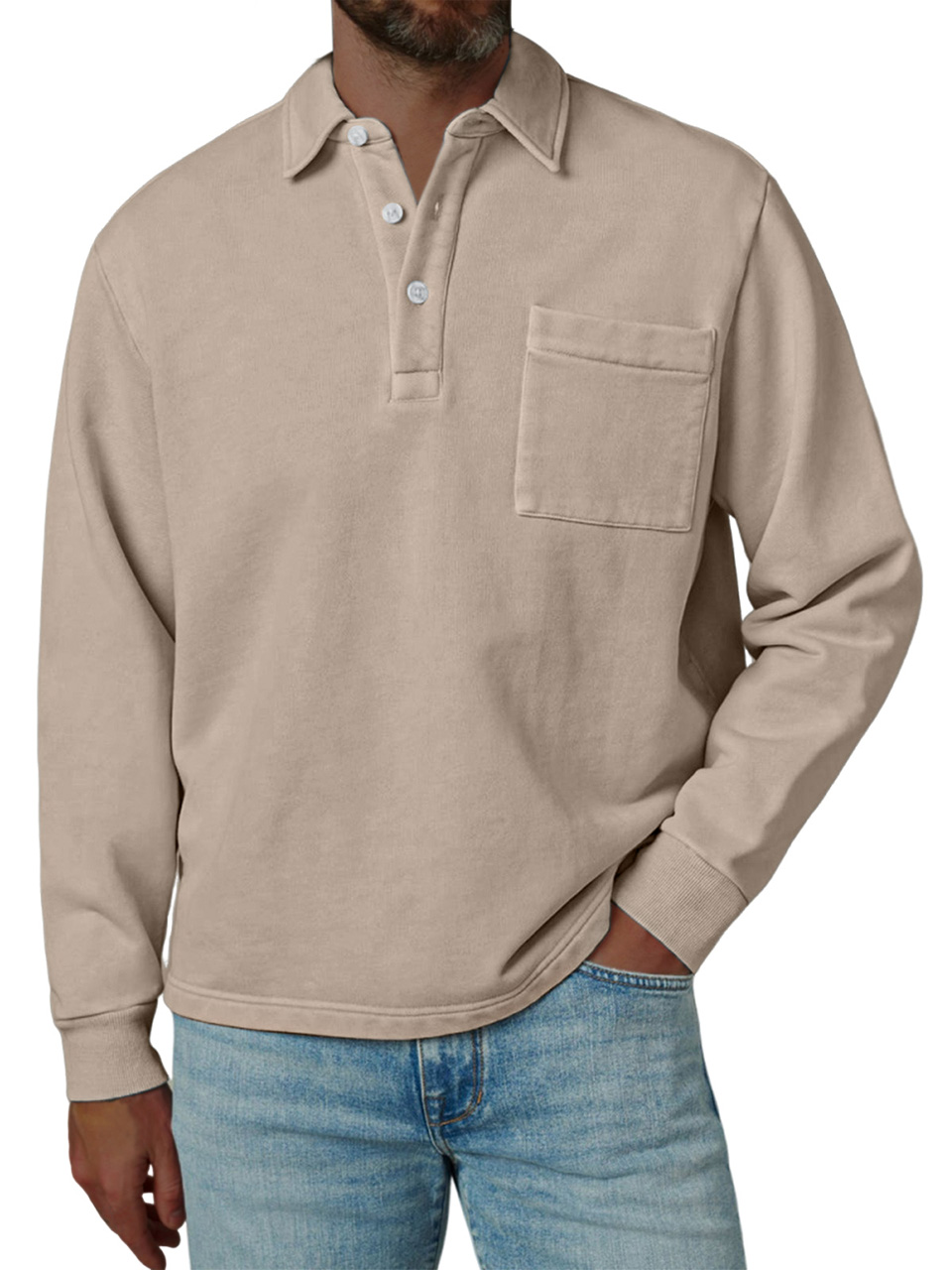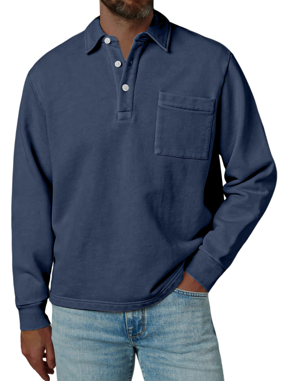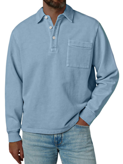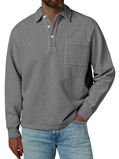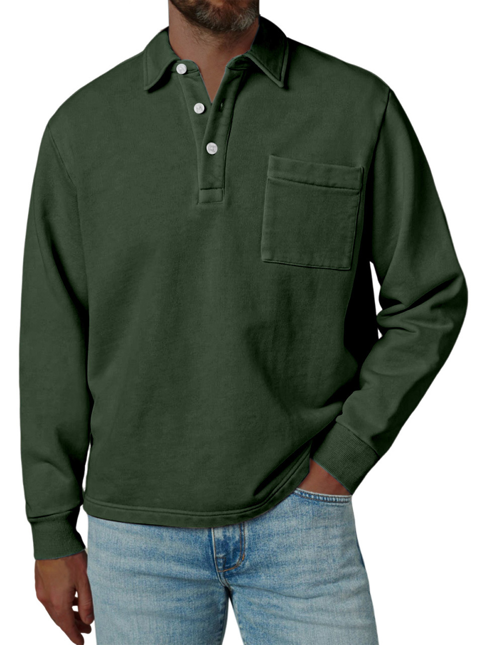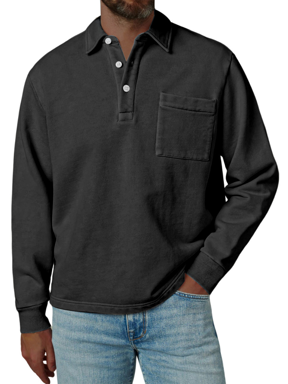 Men's Casual And Comfortable Solid Color Pocket Long Sleeve Lapel Sweatshirts