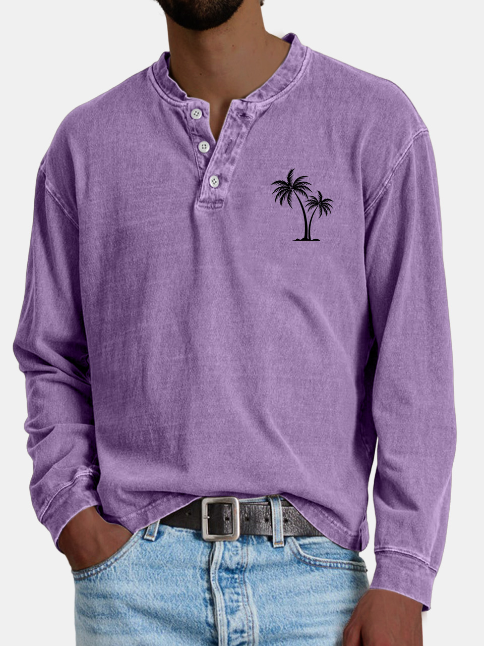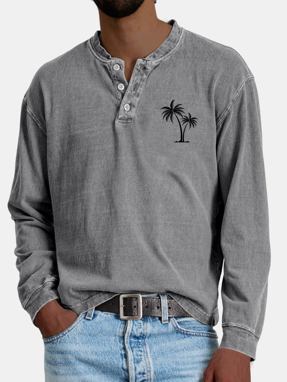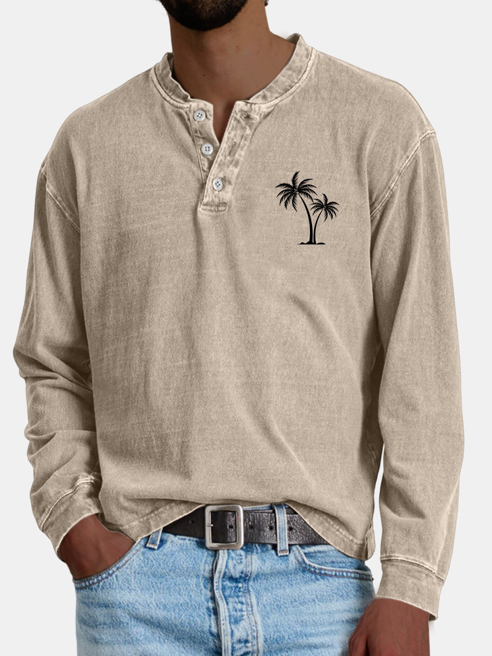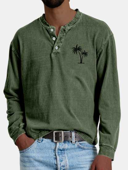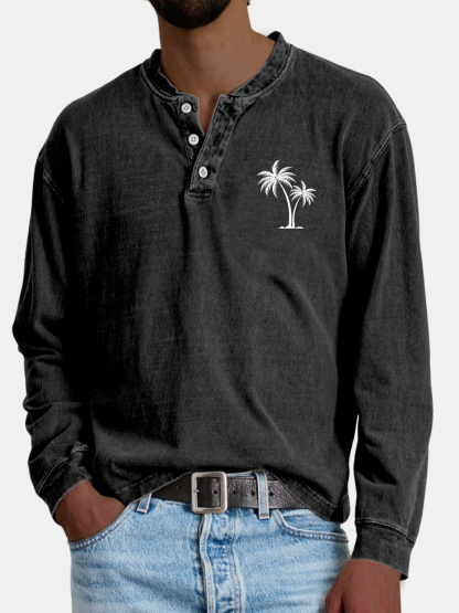 Men's Casual Vintage Coconut Print Button-down Henley