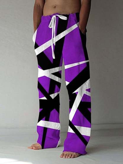 Men's Fashionable Resort Print Lace-Up Loose Casual Pants