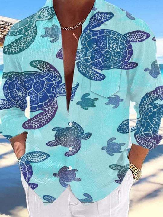 Men's Resort Beach Wave Floral Long Sleeve Shirt