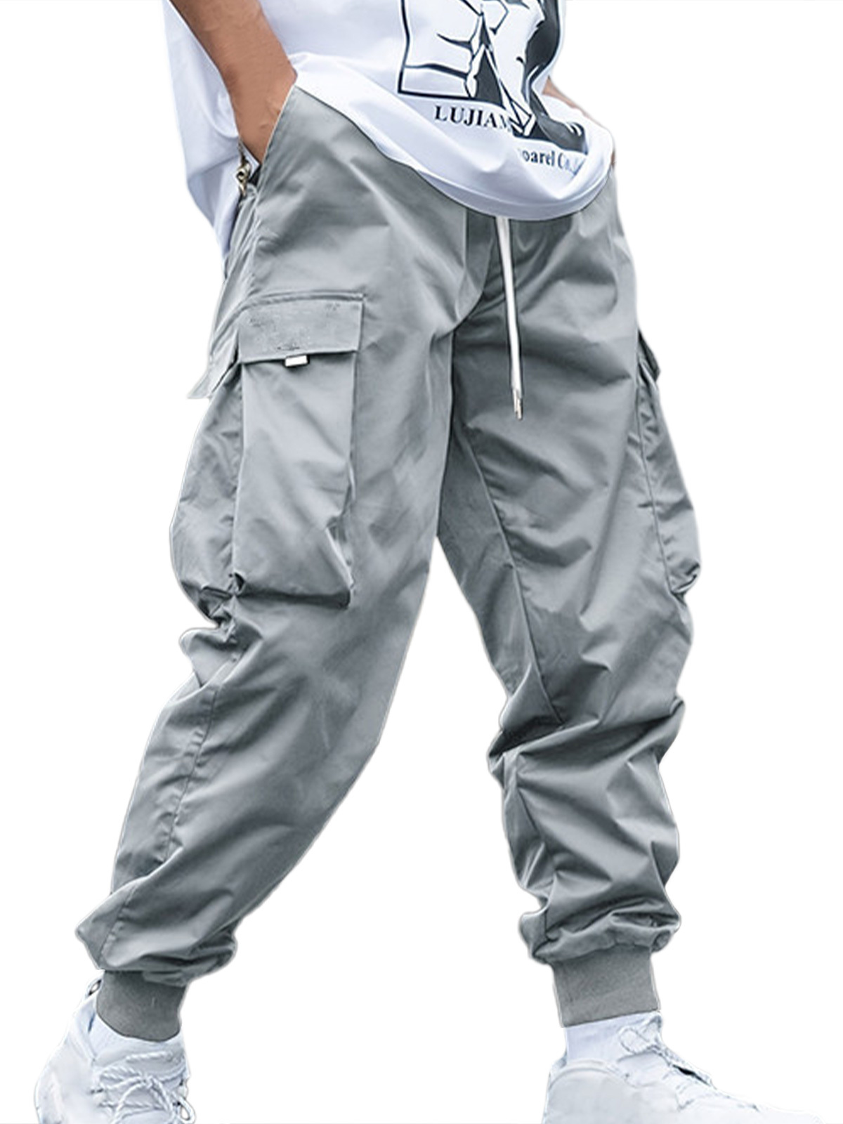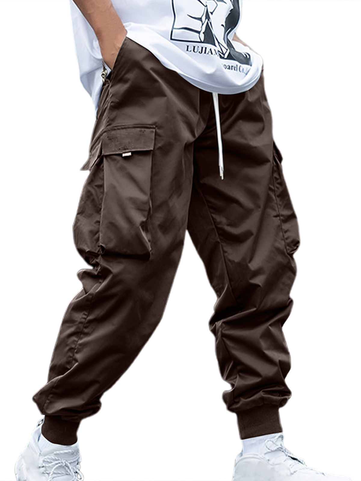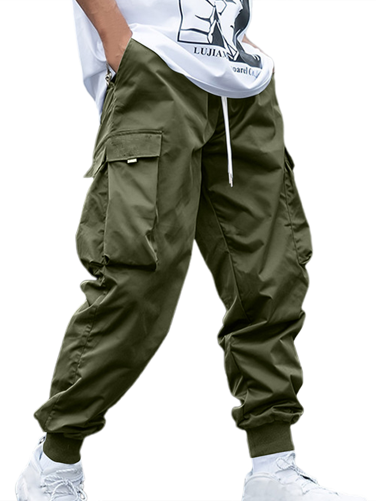 Men's Retro Casual Multi-pocket Elastic Waist Solid Color Trousers