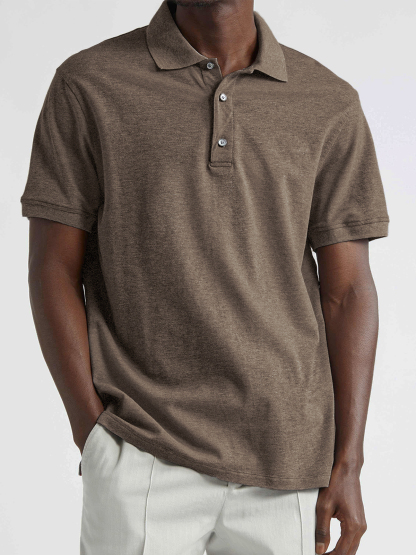 Men's Vintage Distressed Dyed Business Casual Basic Short-sleeved Button-down POLO Shirt