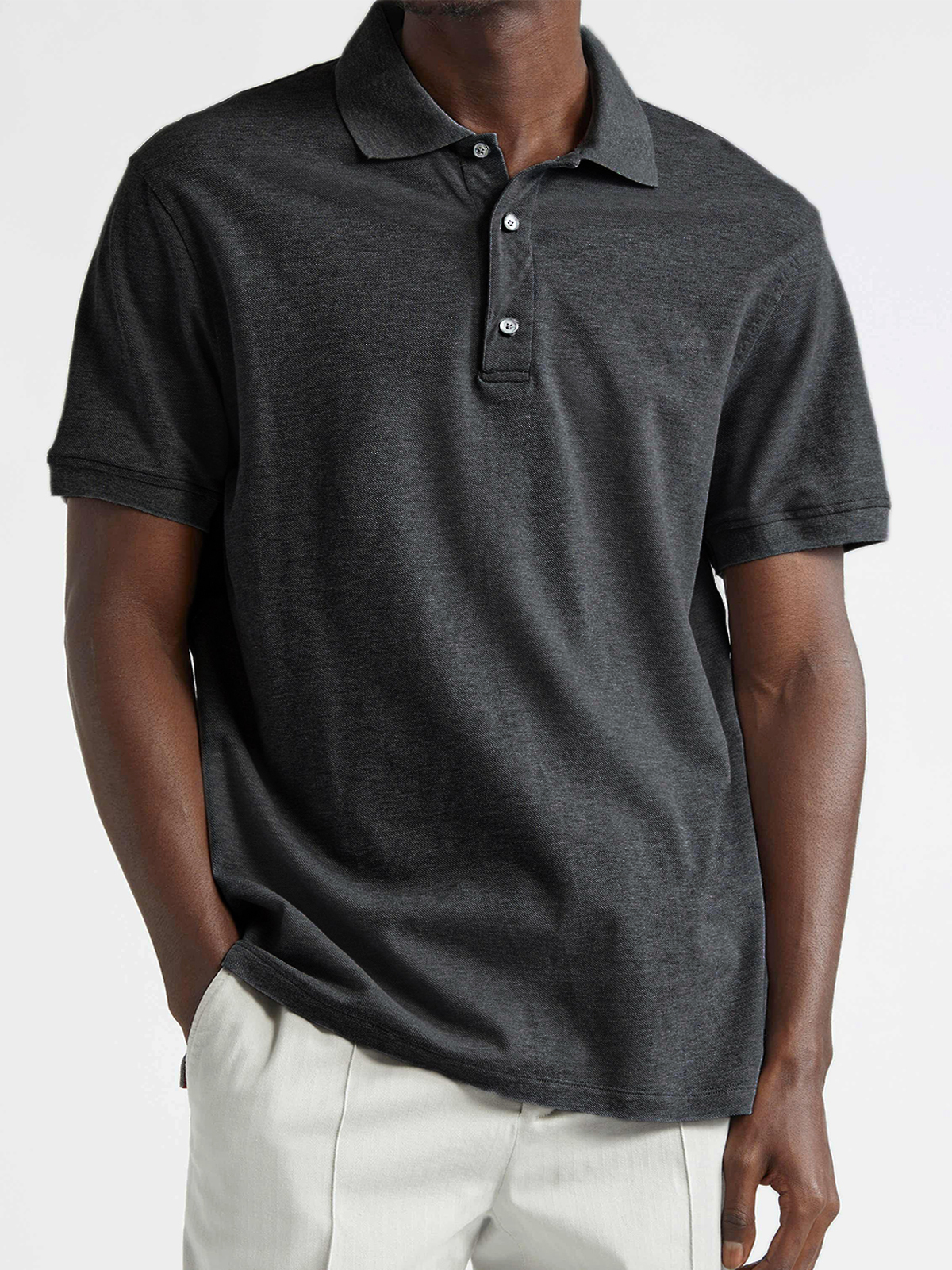 - Neckline: Polo Shirt button down collar