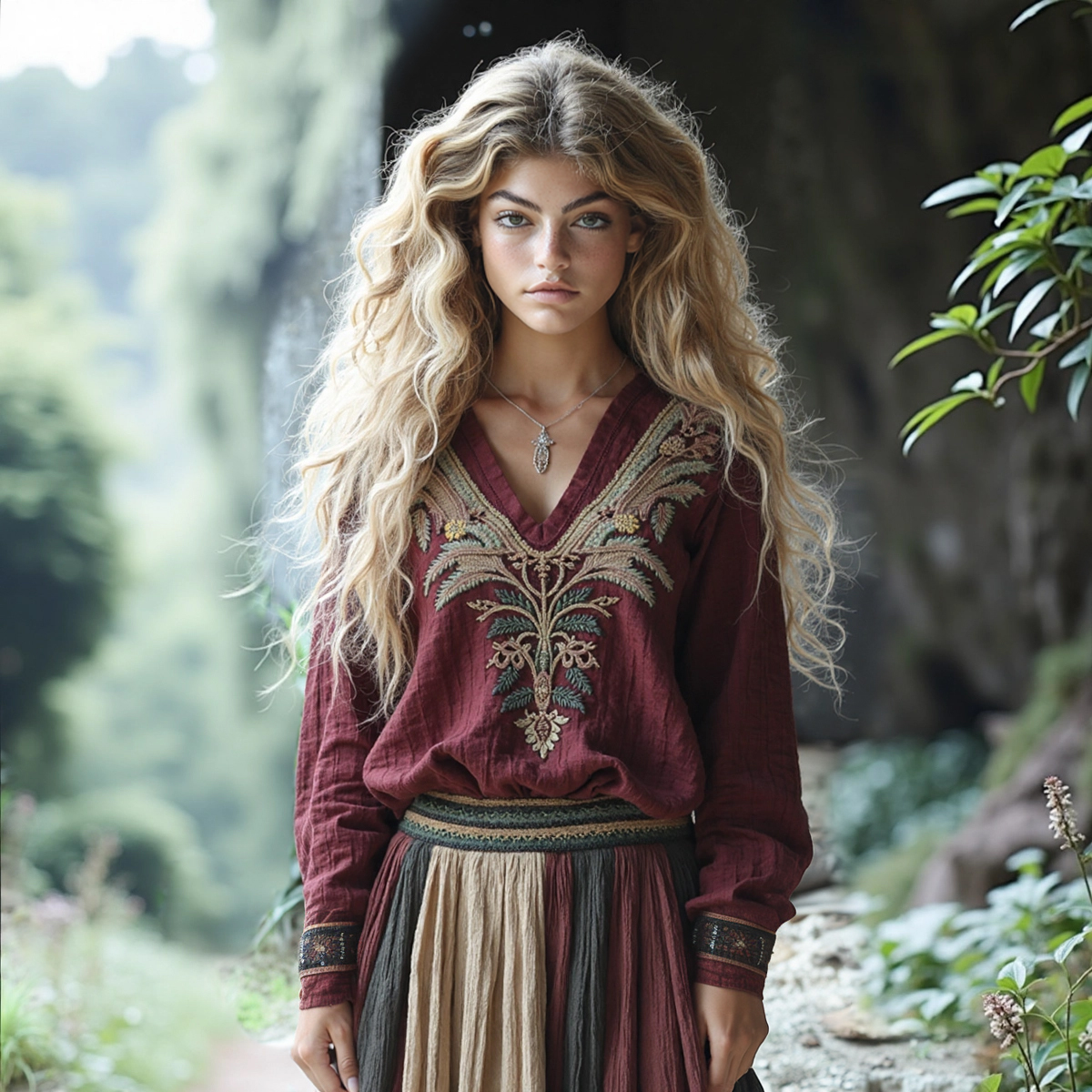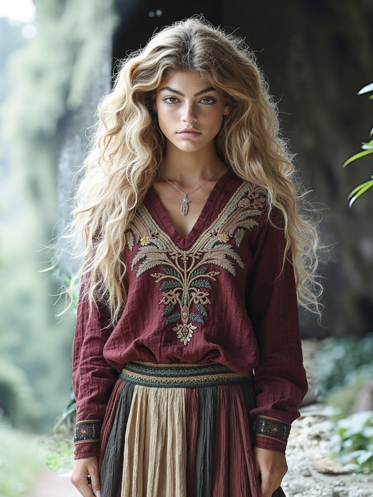 Vintage Tradition Flowers Embroidery Art Linen Blend Cozy Tunic