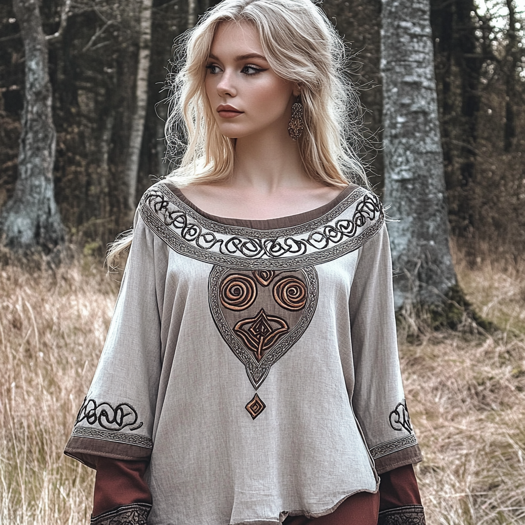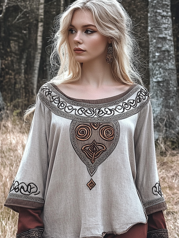Vintage Viking Celtic Linen Crew Neck Cropped Shirt