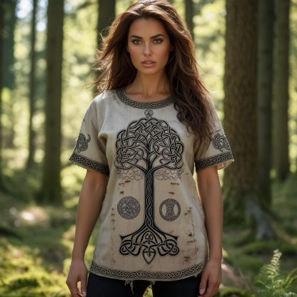 Vintage Viking Tree Of Life Linen Short Sleeve T-shirt