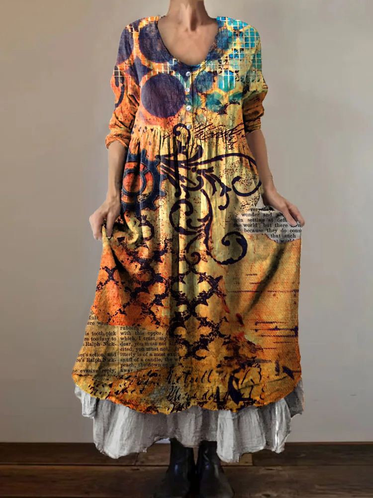 Women's Art Painting Hippie Floral Print V Neck Dress