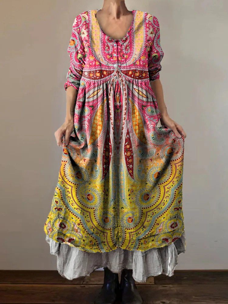 Women's Art Painting Hippie Floral Print V Neck Dress