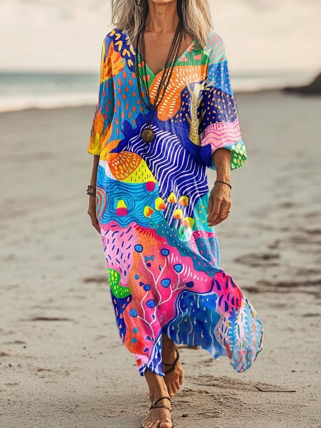 Women's Colorful Irregular Pattern Art Print Pocket Cotton Dress
