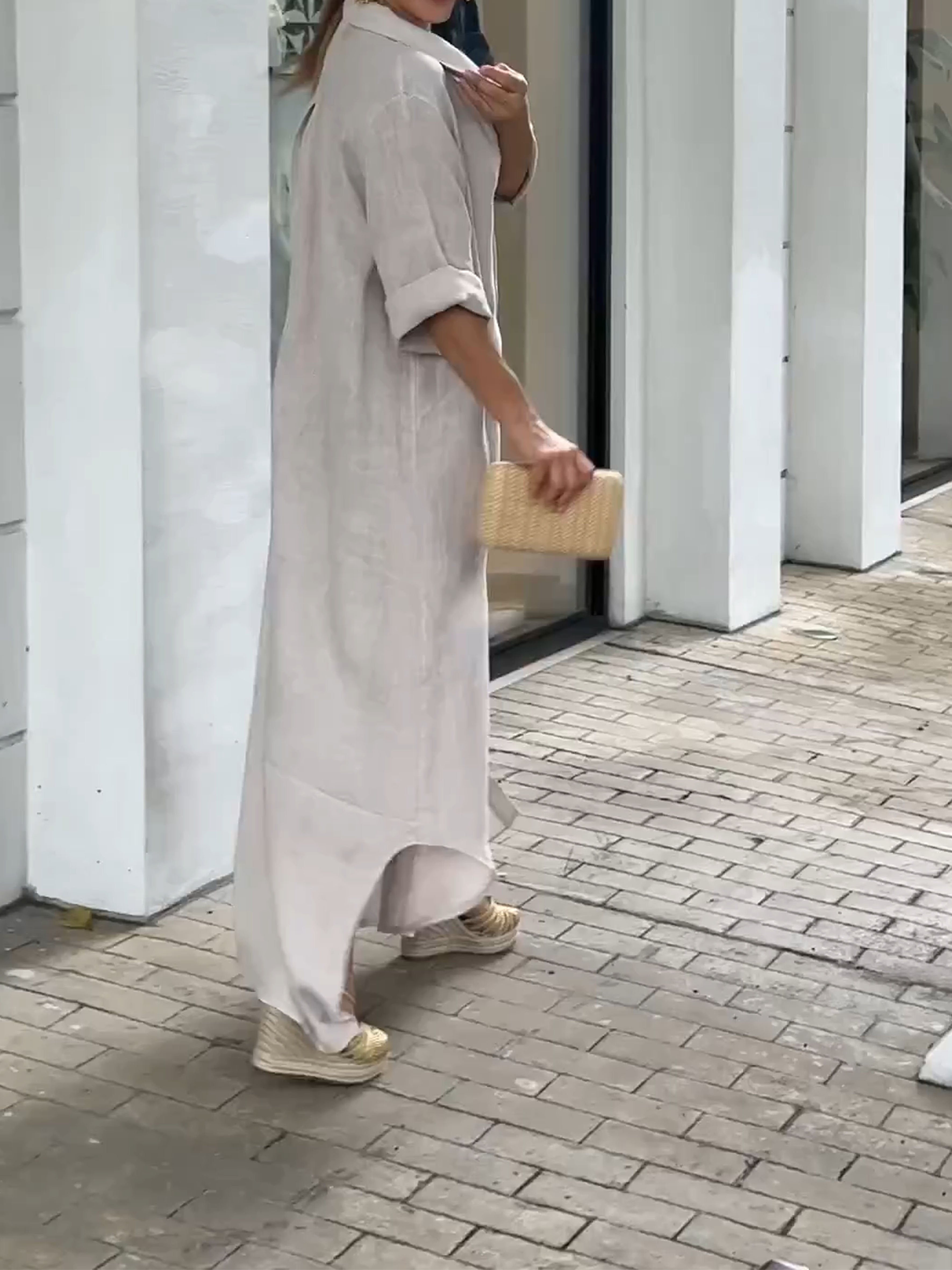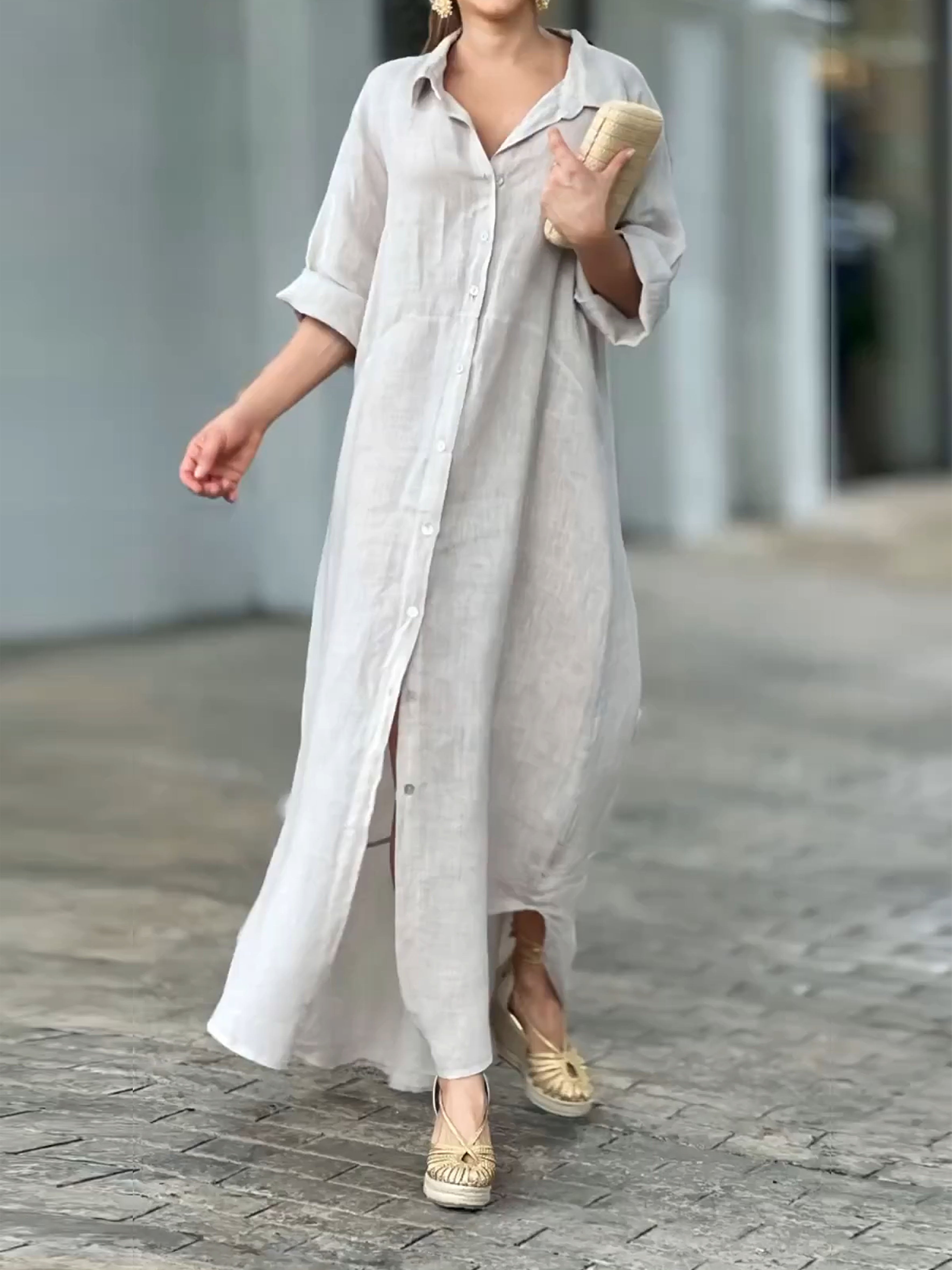 Women's Cotton and Linen V-neck Irregular Dress